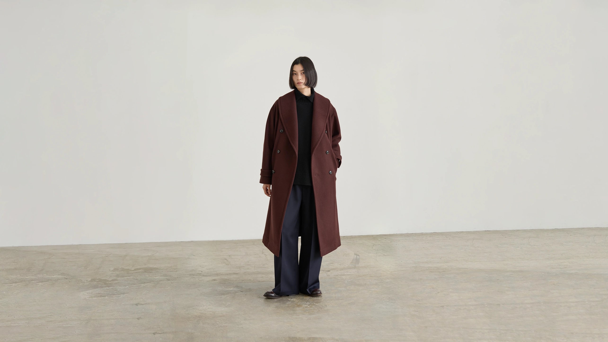 The true value is called into question as deep-down fashion. We always want to take a position to keep distance from the flow of the dramatic change of fashion by maintaining a new style which has been born through our lives – food, housing and clothing. This idea can be seen in all the processes of our clothes making in selection of materials and designing, pattern-making, sewing. The warmth that material of nature has, and the presence that traditional material gives off are essential for our collection. We were working on men’s clothes originally and the pattern making which is used for men’s clothes is applied for our women’s clothes. By putting a toile check for each design, a garment can come to appear as precisely as we design. We work together with skilled craftsmen to express a new sense of creativity.