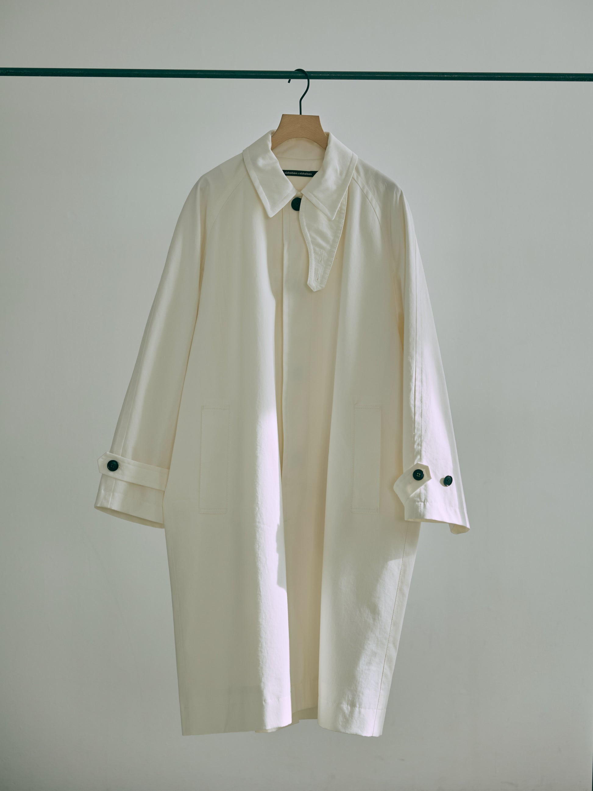 オーセンティックな仕上がりのラグランスリーブのステンカラーコート。クラシックな雰囲気は残しつつ、細部を現代的によりモダンシックに仕上げました。キュプラ100%の裏地が、滑りの良さと上質感を感じる着心地に。デタッチャブルのチンフラップもアクセントに。