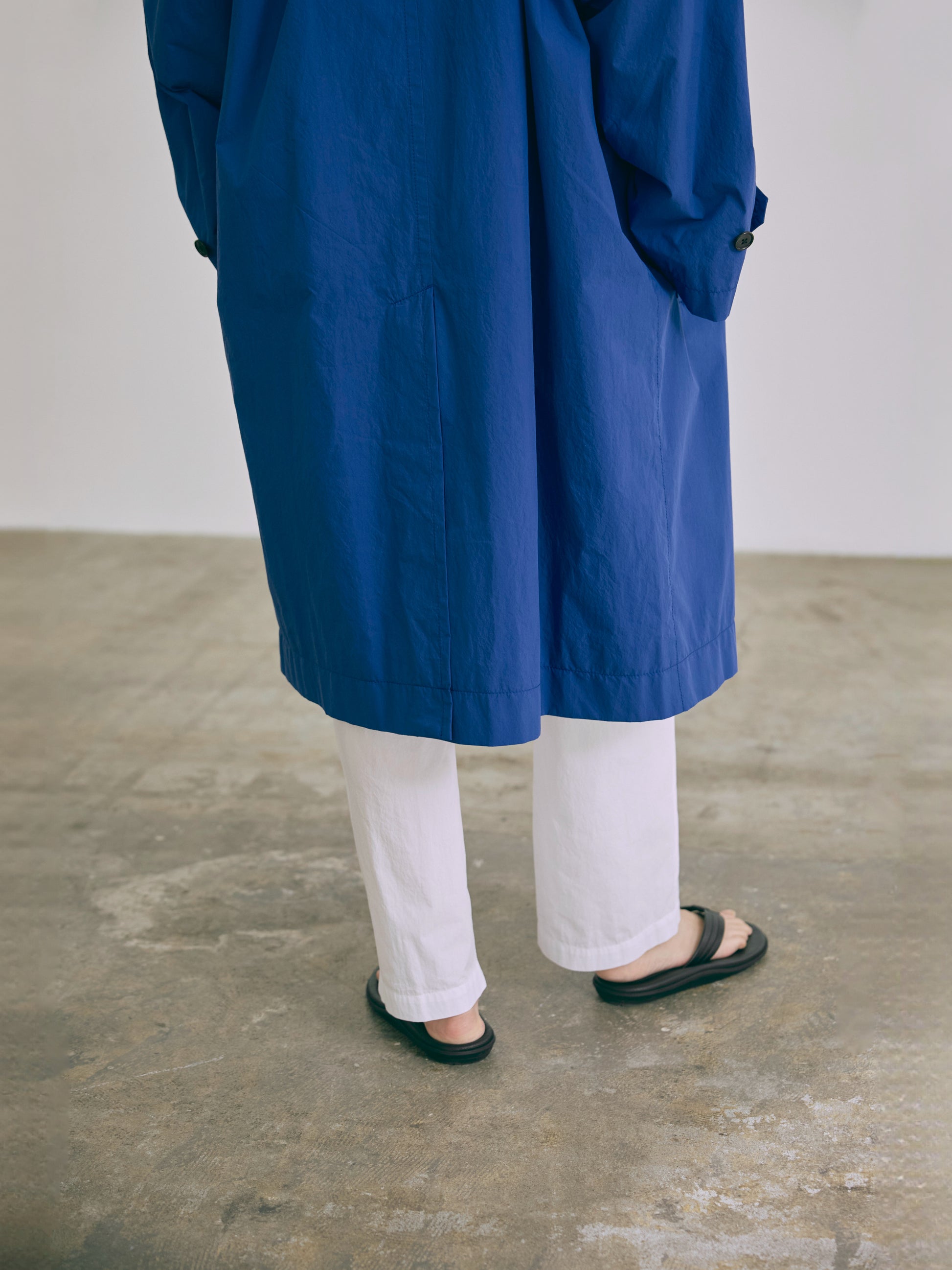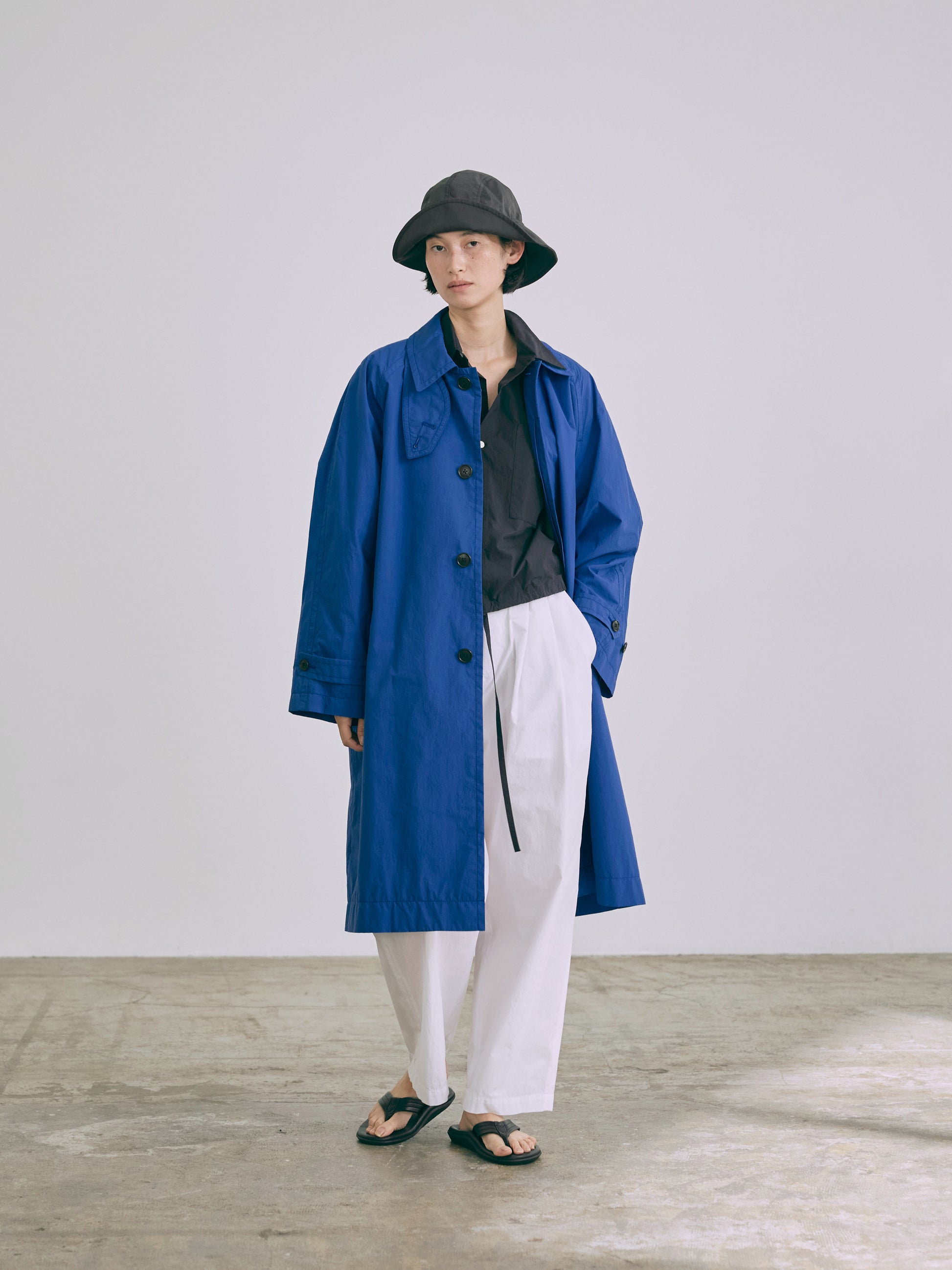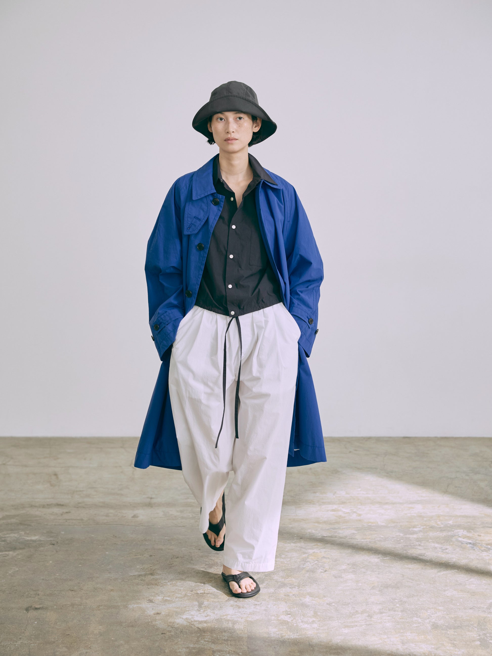 タテ糸にナイロン糸、ヨコ糸に綿糸を高密度に織り込んだオリジナル素材。軽さとさらりとした清涼感が心地良い綿ナイロン素材。2026年春夏シーズンにリニューアルして登場の新素材です。