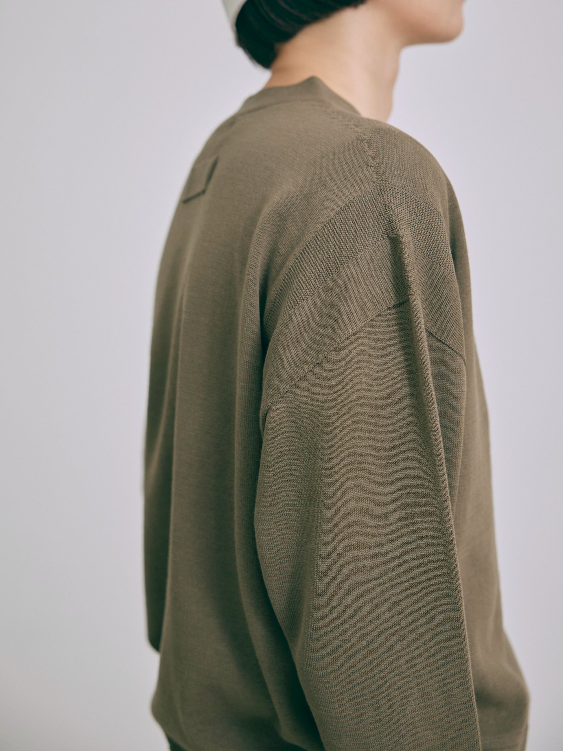 A pullover that uses vintage knit details to create a modern arrangement. .The high neckline and the voluminous sleeves become feminine accents.