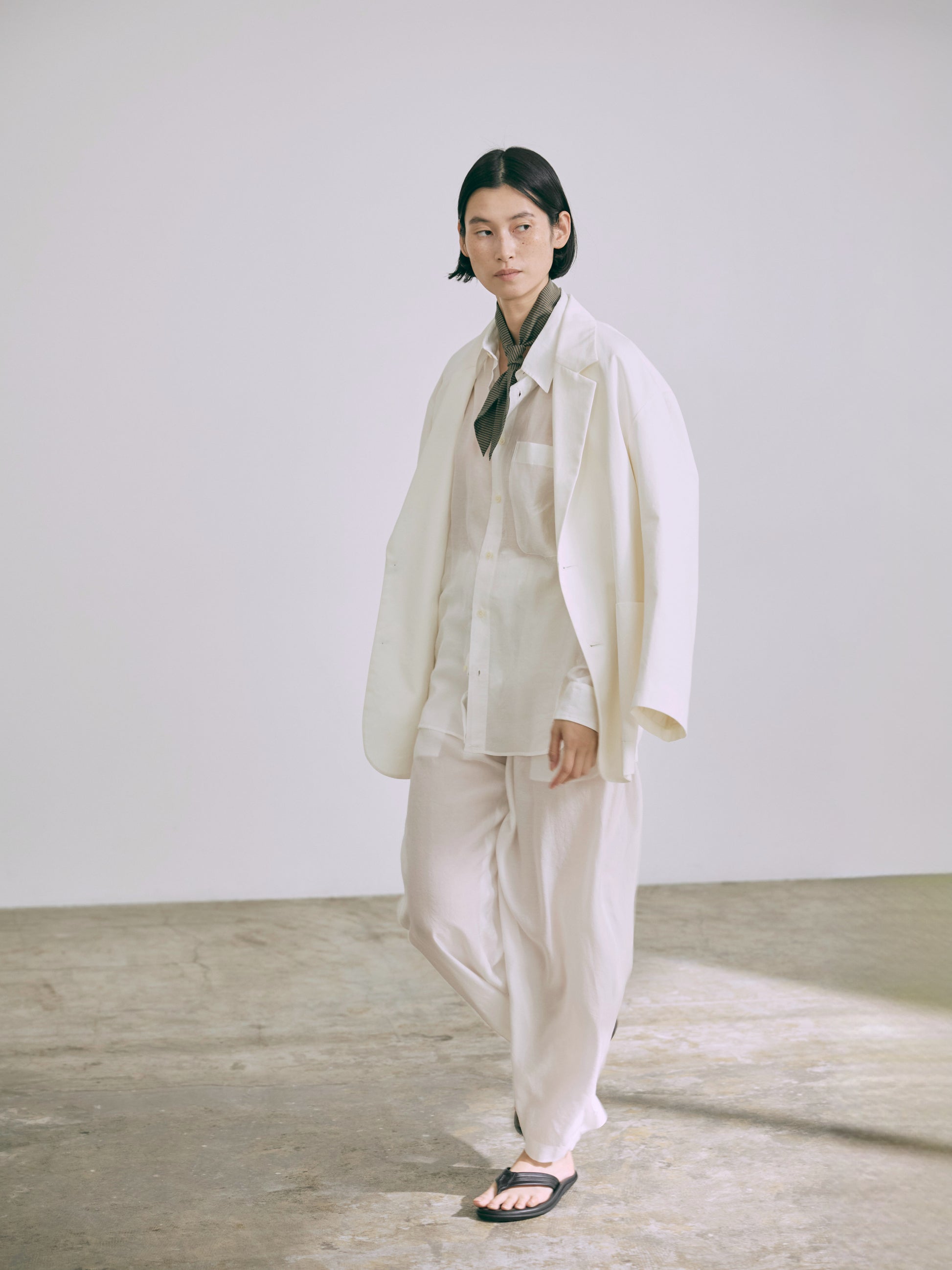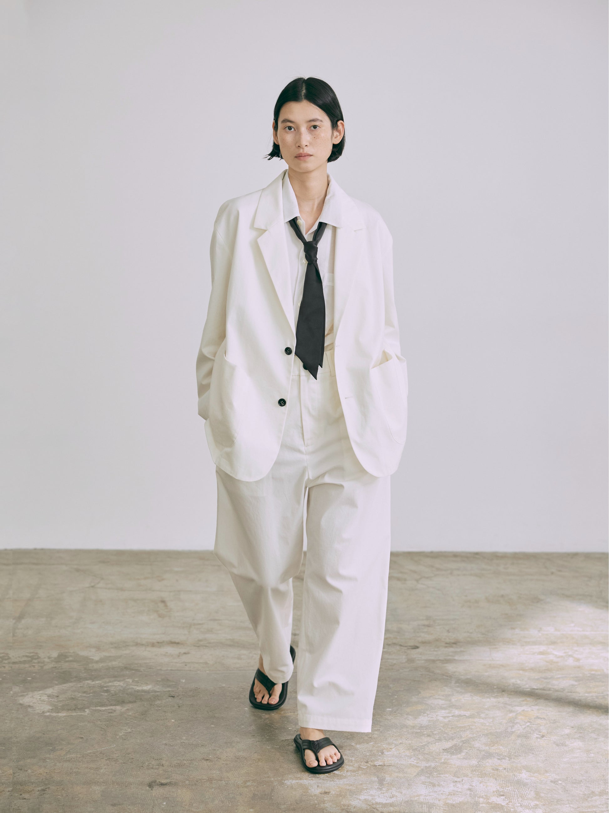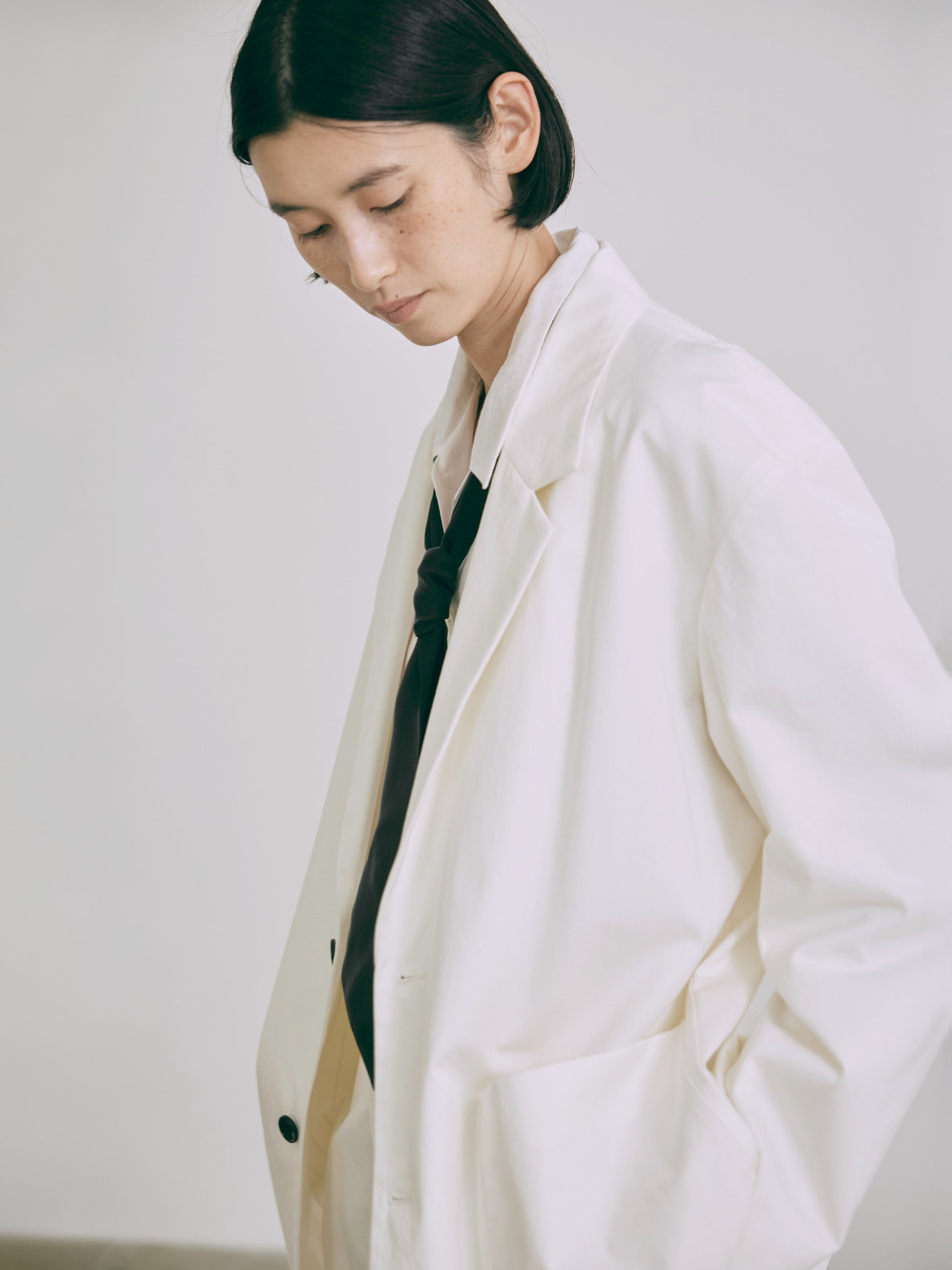 シンプルなデザインながらゆったりとしたオーバーサイズのシルエットが持つ魅力を引き出したシングルテイラージャケット。トレンドに左右されないタイムレスな魅力を目指してデザインされたニュースタンダードな一着。