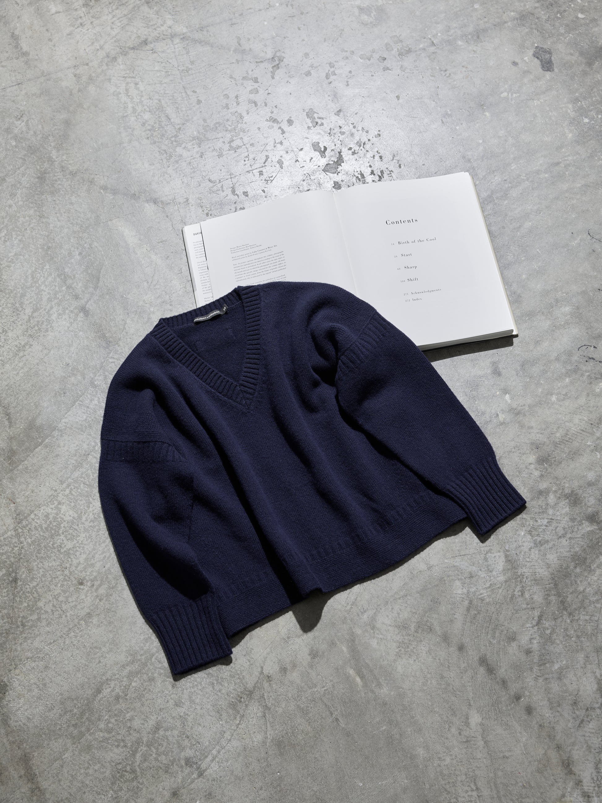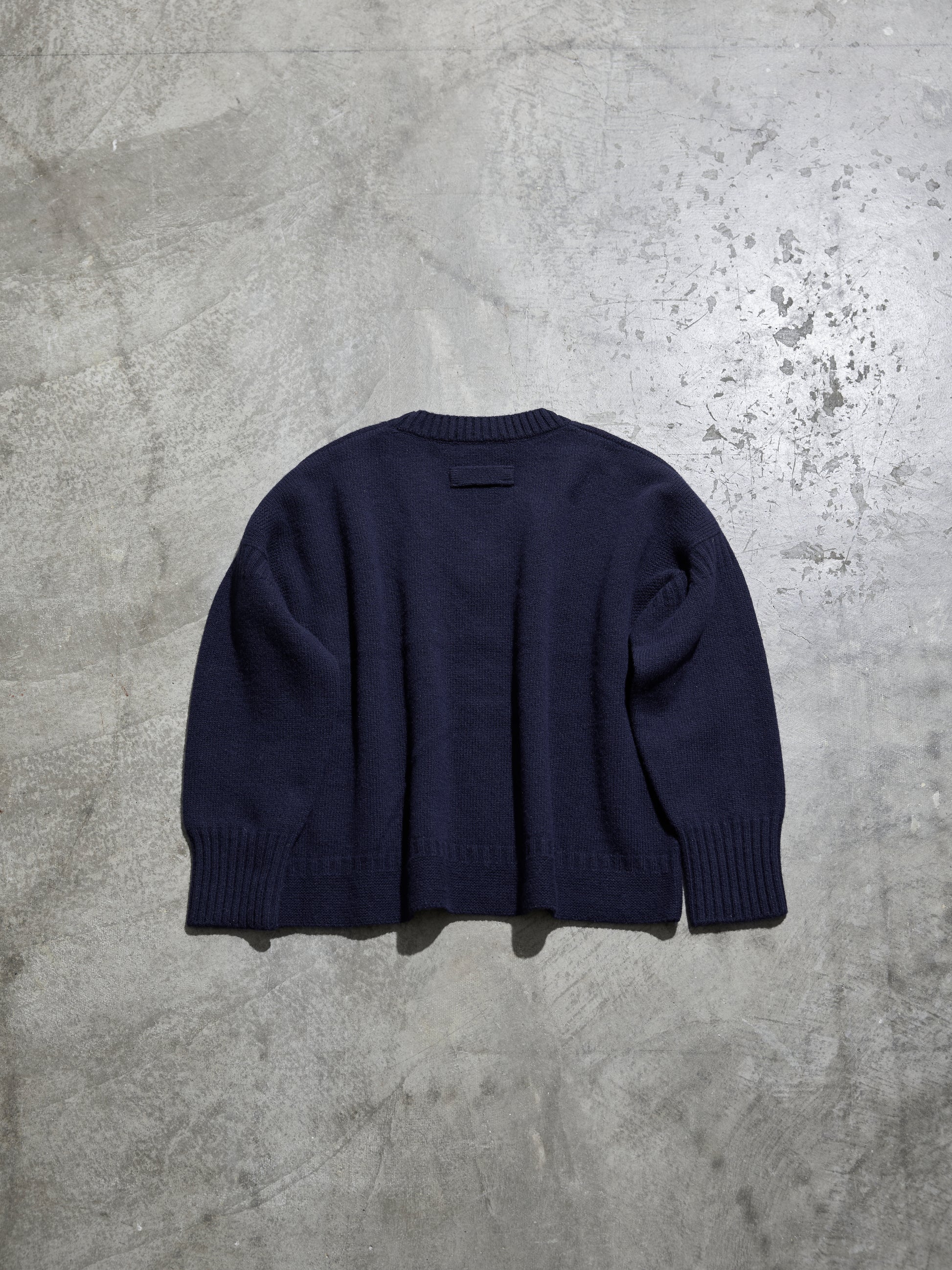 クラシカルなアイテムをモダンにアレンジしたビッグシルエットニット。ガンジーニットのディテール、雰囲気を残しつつサイズバランスを見直し、大人の女性が着用出来るVネックに仕上げました。インナーTシャツやシャツとのコーディネートをお楽しみ下さい。