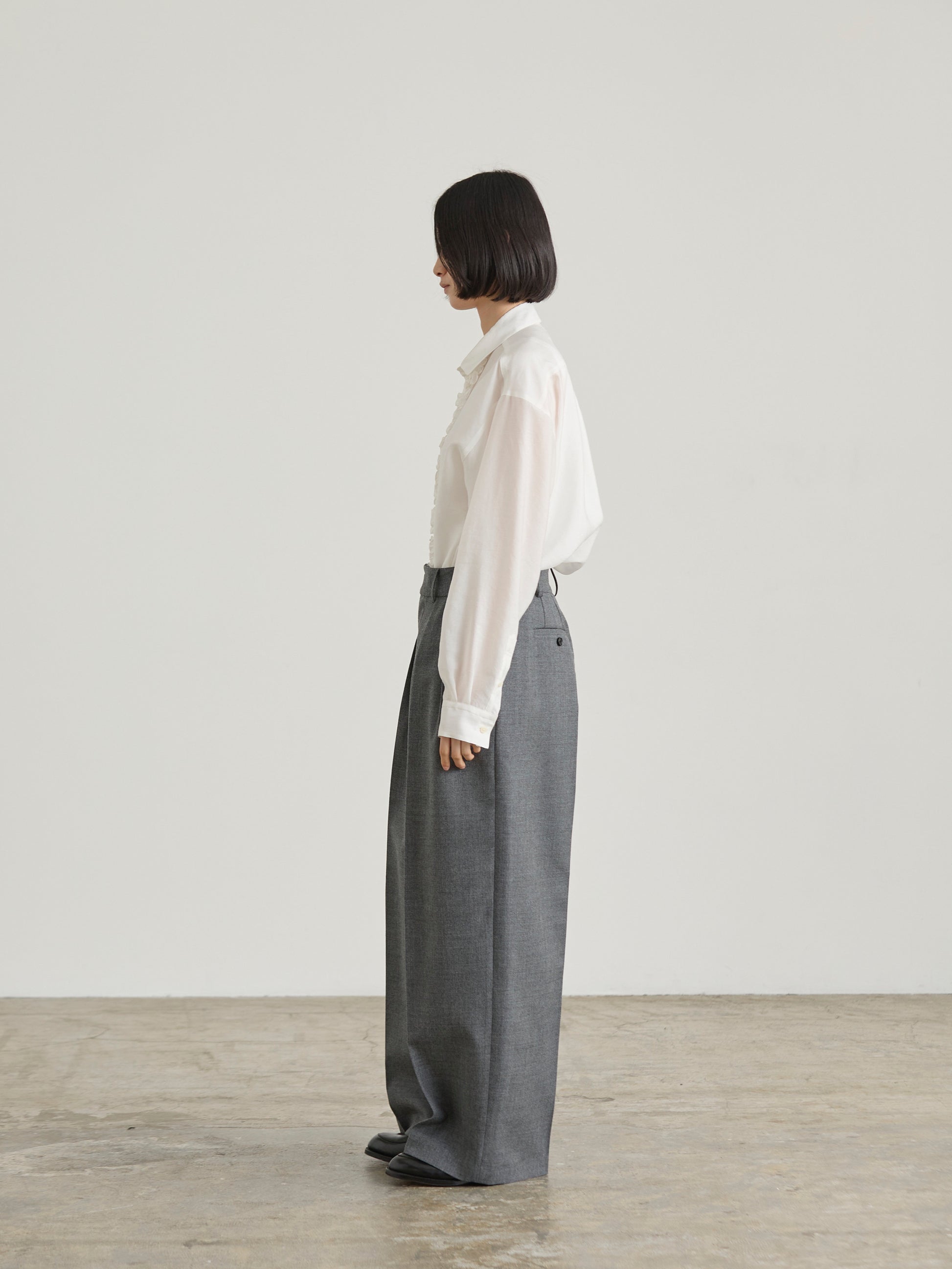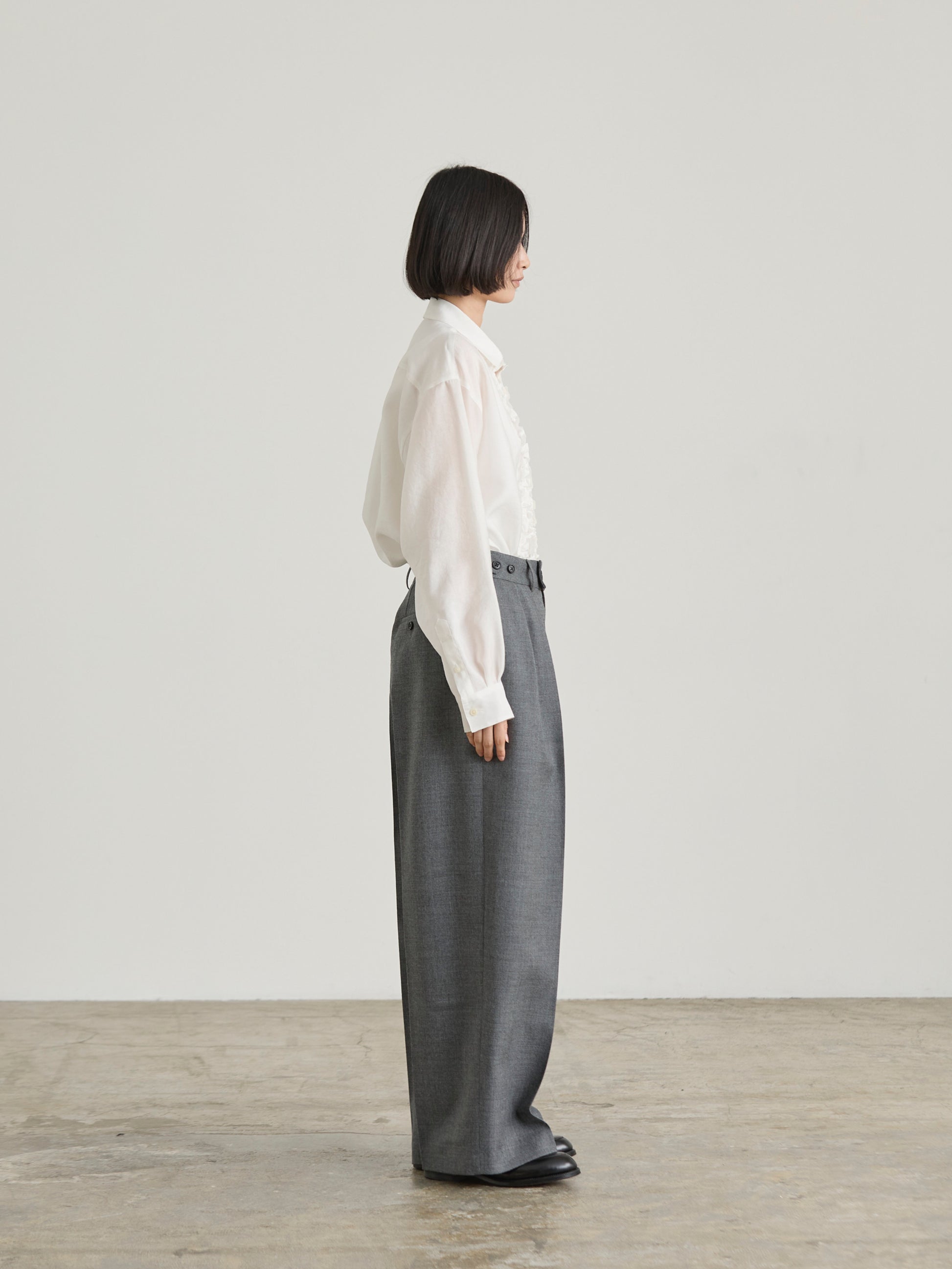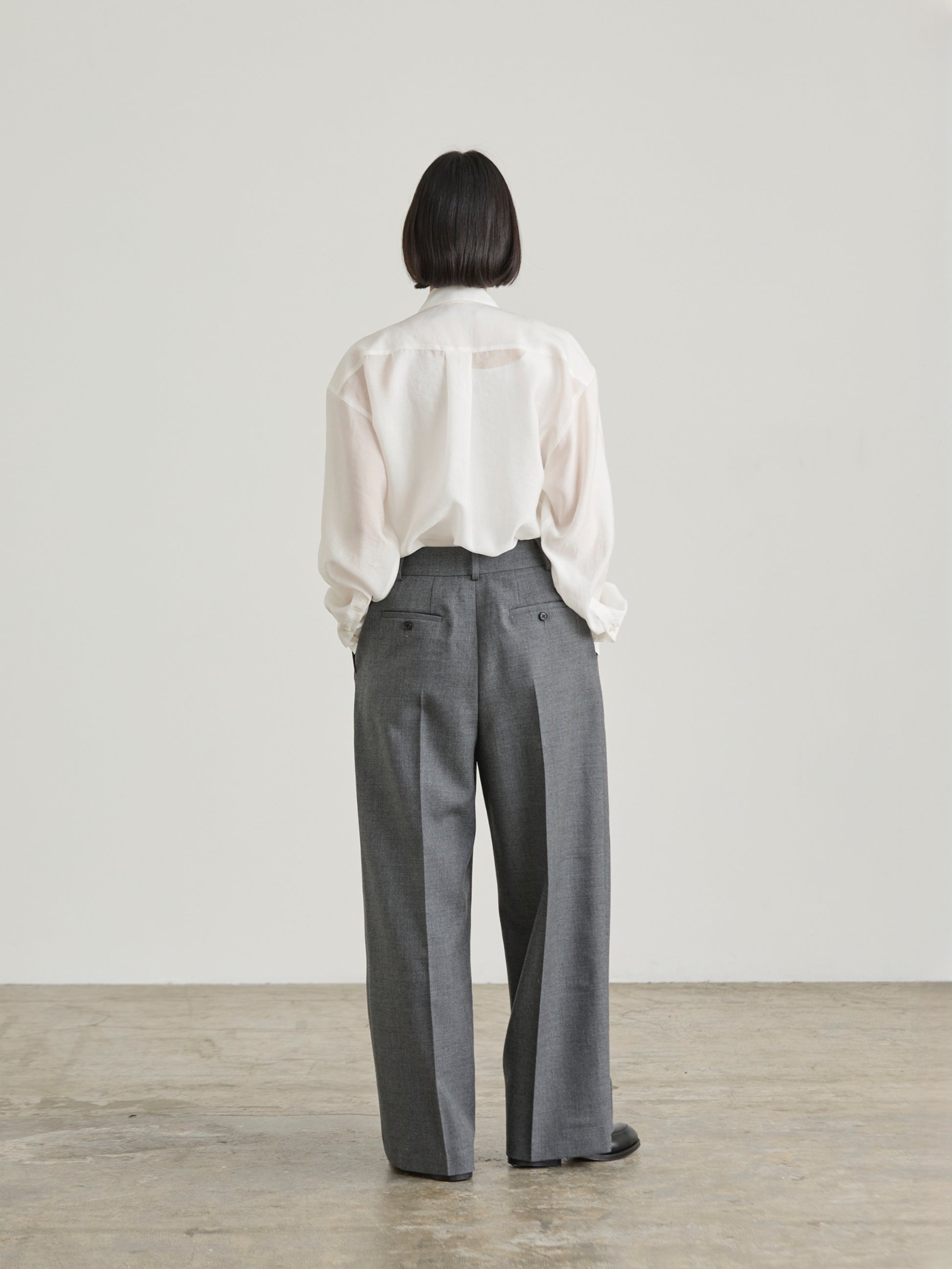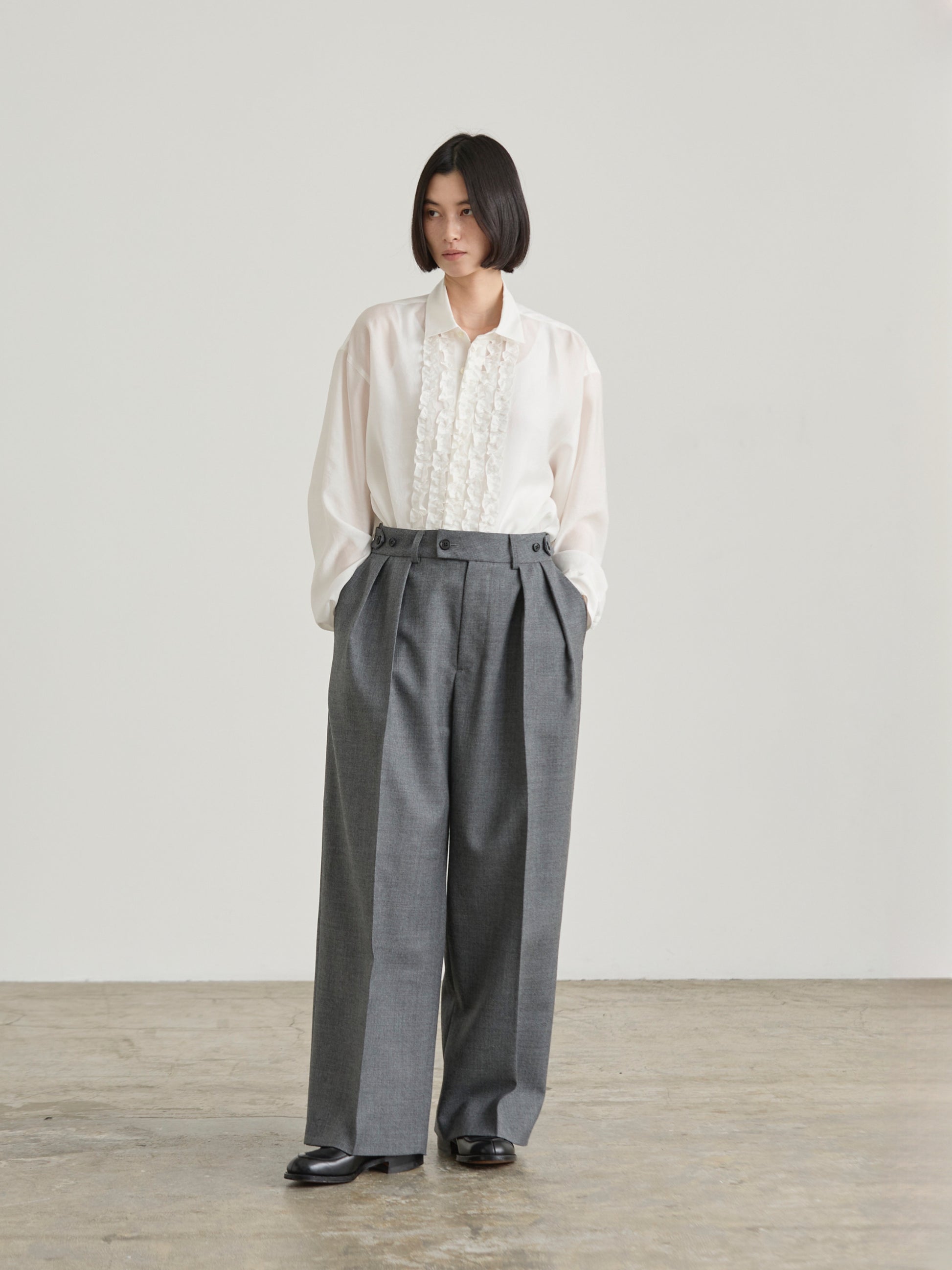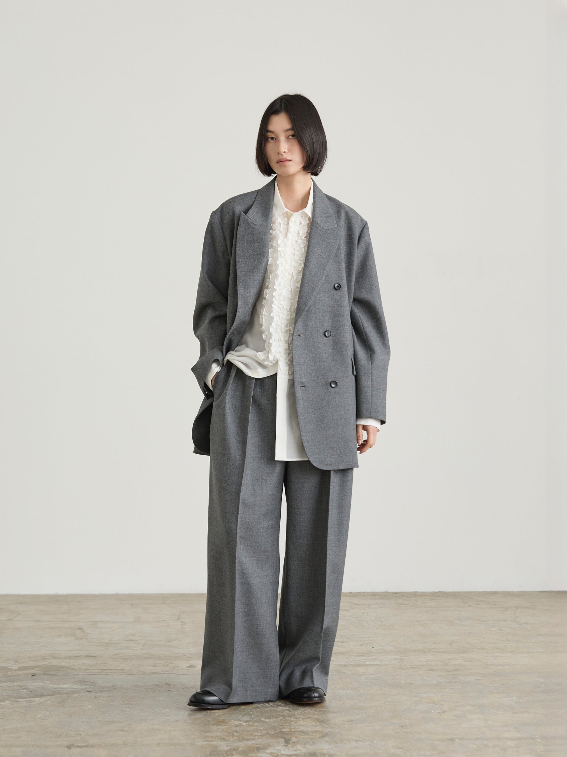 ウエスト回りをきれいに魅せるダブルプリーツのパンツ。フィット感はそのままで、ウエストとヒップ周りにも適度なゆとりをもたせ大人が着れるワイドレッグに仕上げました。