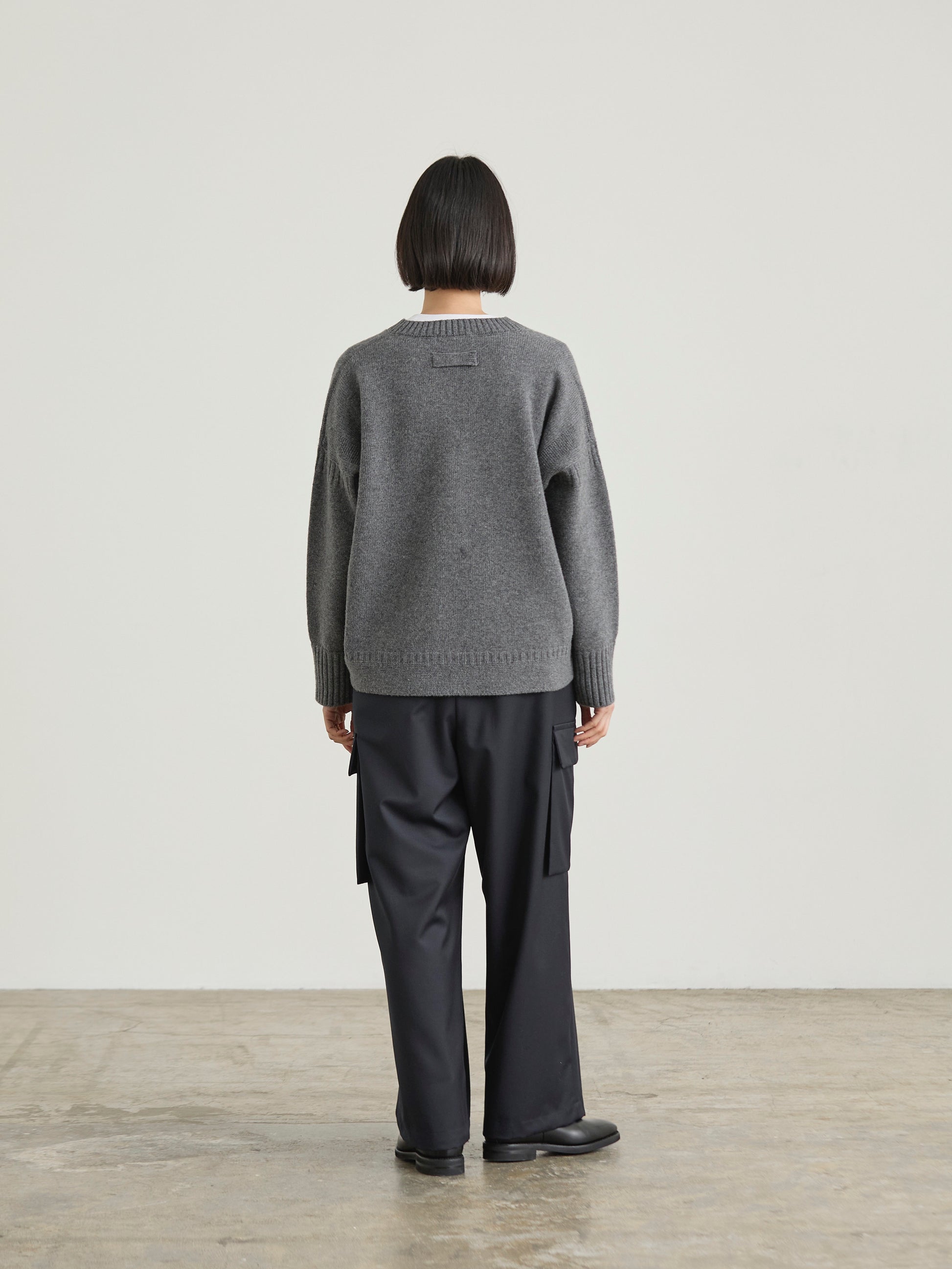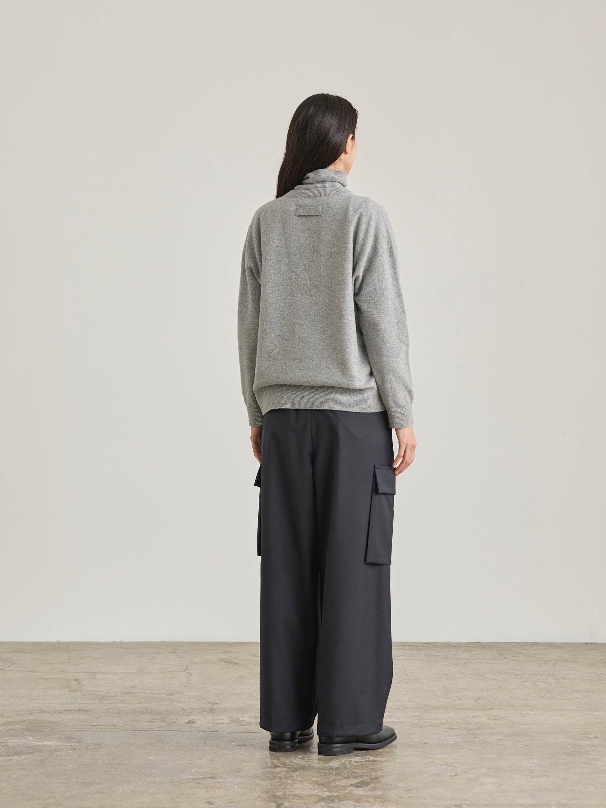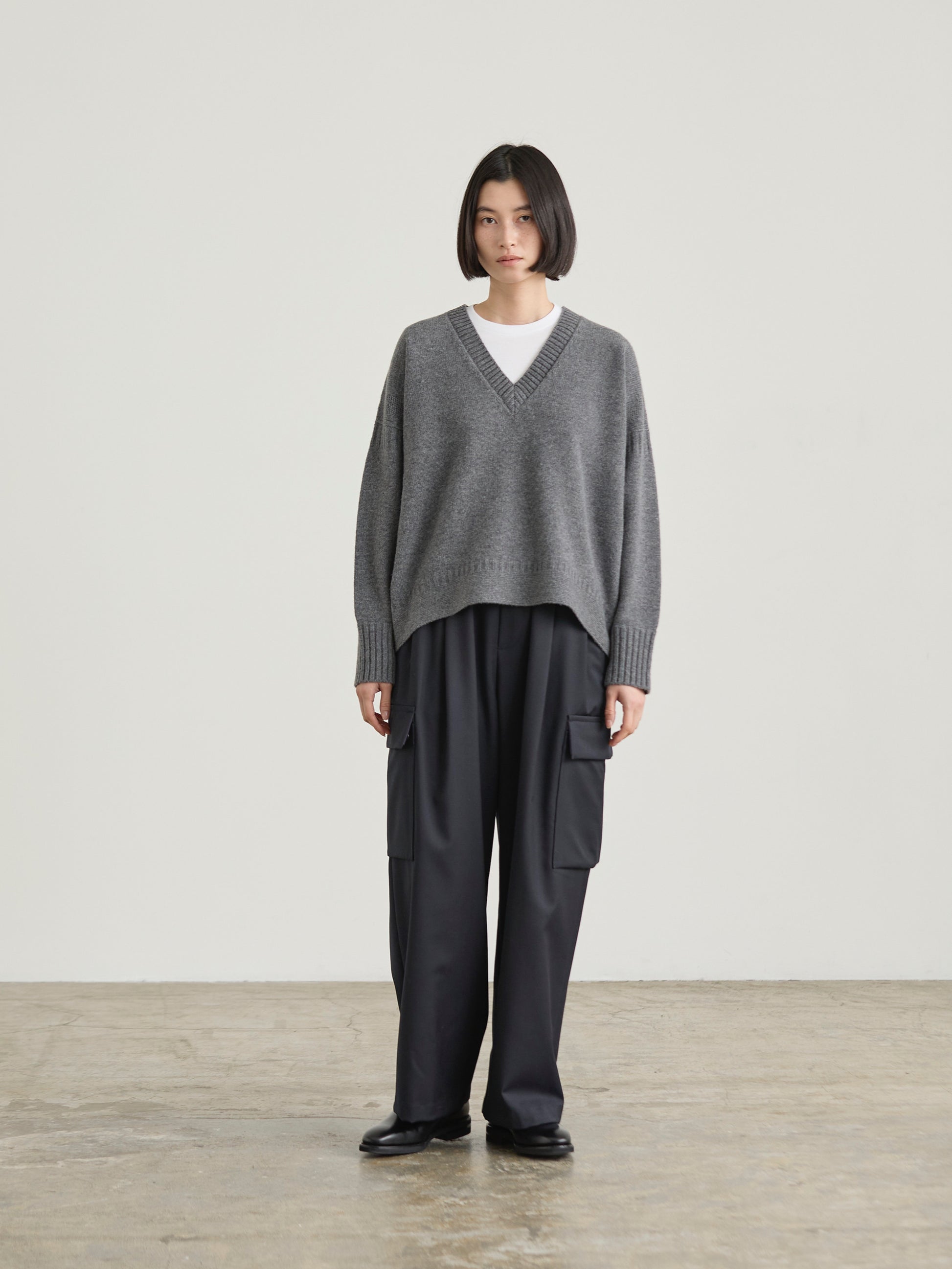2タックのワイドシルエットのカーゴパンツ。ショートやロング、ジャスト、ビッグなどいろいろなトップスとも好相性。腰回りにゆとりをもたせたウエストゴムのイージーパンツ仕様。デザインポイントのサイドポケットと後フラップポケット、裾のドローコードをアレンジした2wayの着こなしをお楽しみ下さい。