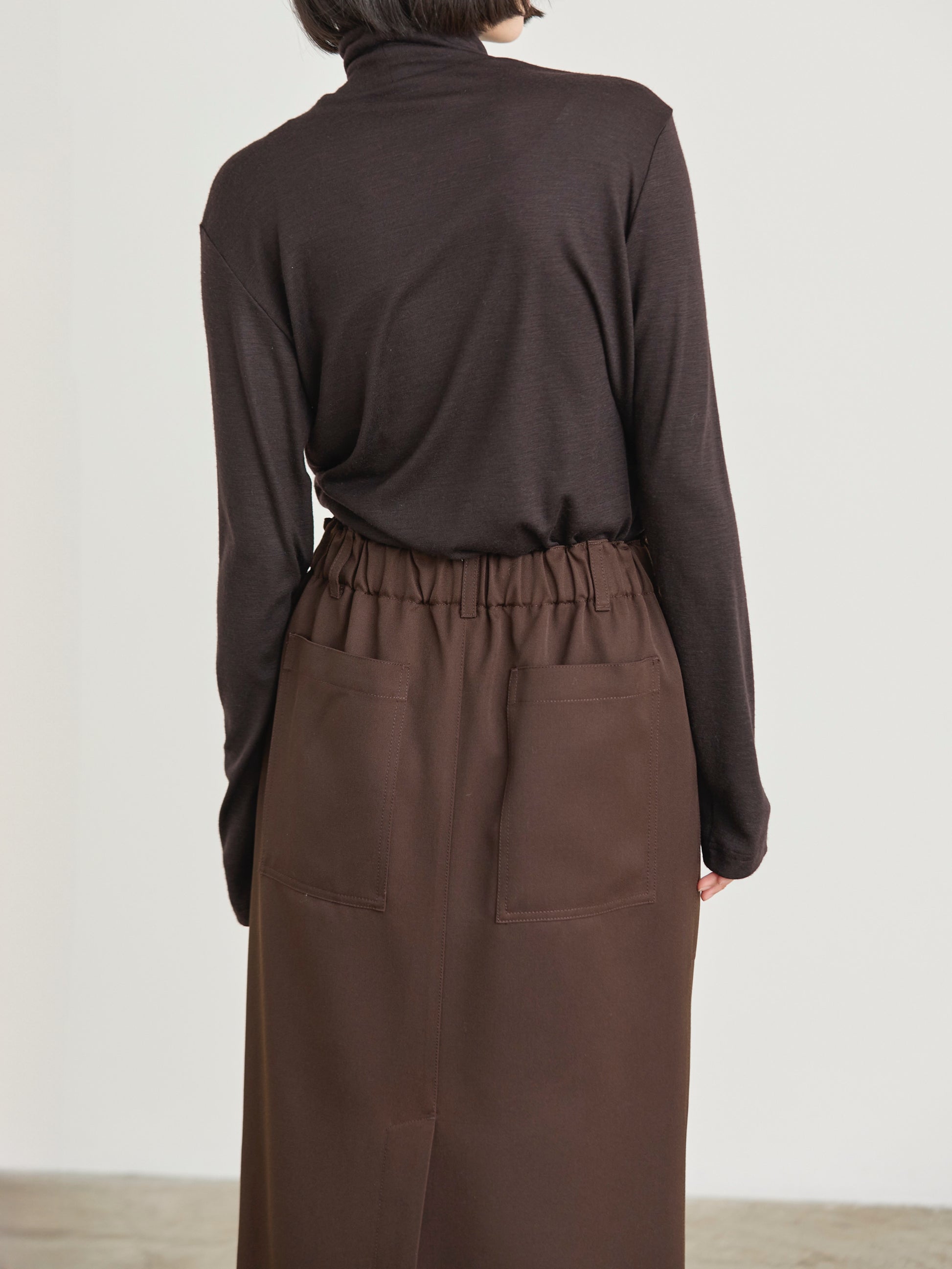 ブランド定番の人気型PIANOスカートをアッデート。タイトシルエットに深めのバックベンツが快適な足さばきを後押しします。シンプルなコーディネートにもバランス良く着用できます。ウエストはゴム仕様に加えフィット感を高めるドローストリング。