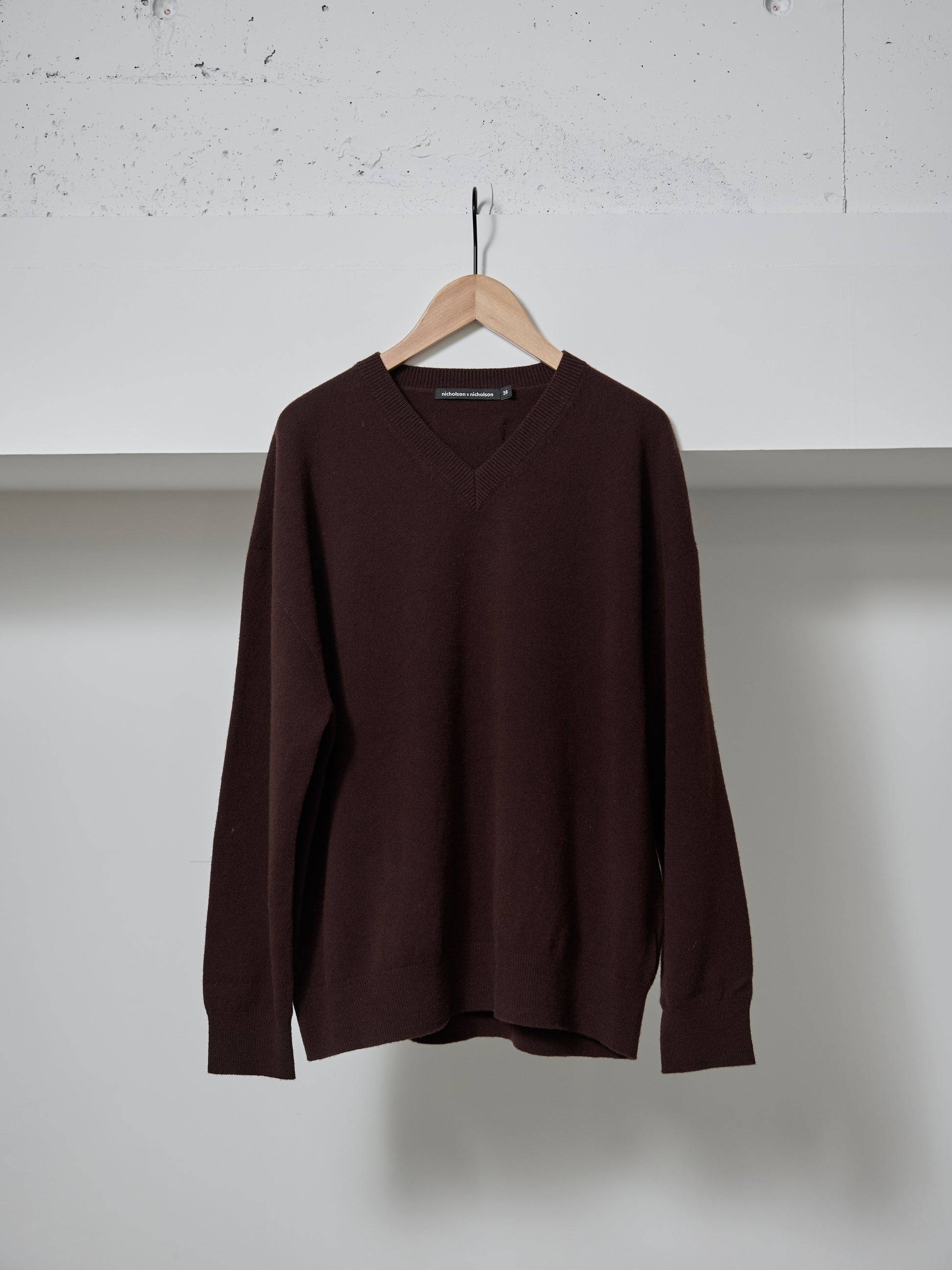 小さめのVゾーンでインナーTシャツとの相性も良好の大人のVネックニット。 大人の女性にもスタイリングしやすいようにリラックスフィットのシンプルでシックなスタイルをお楽しみいただけます。