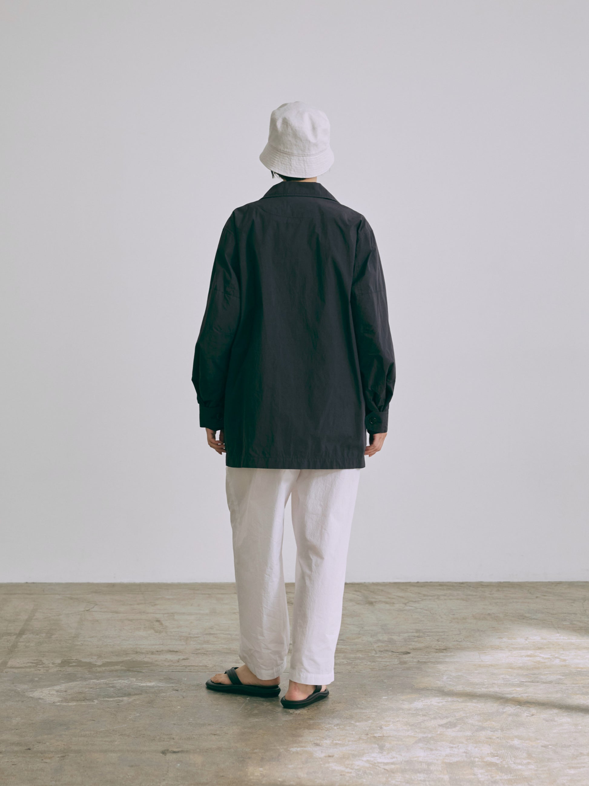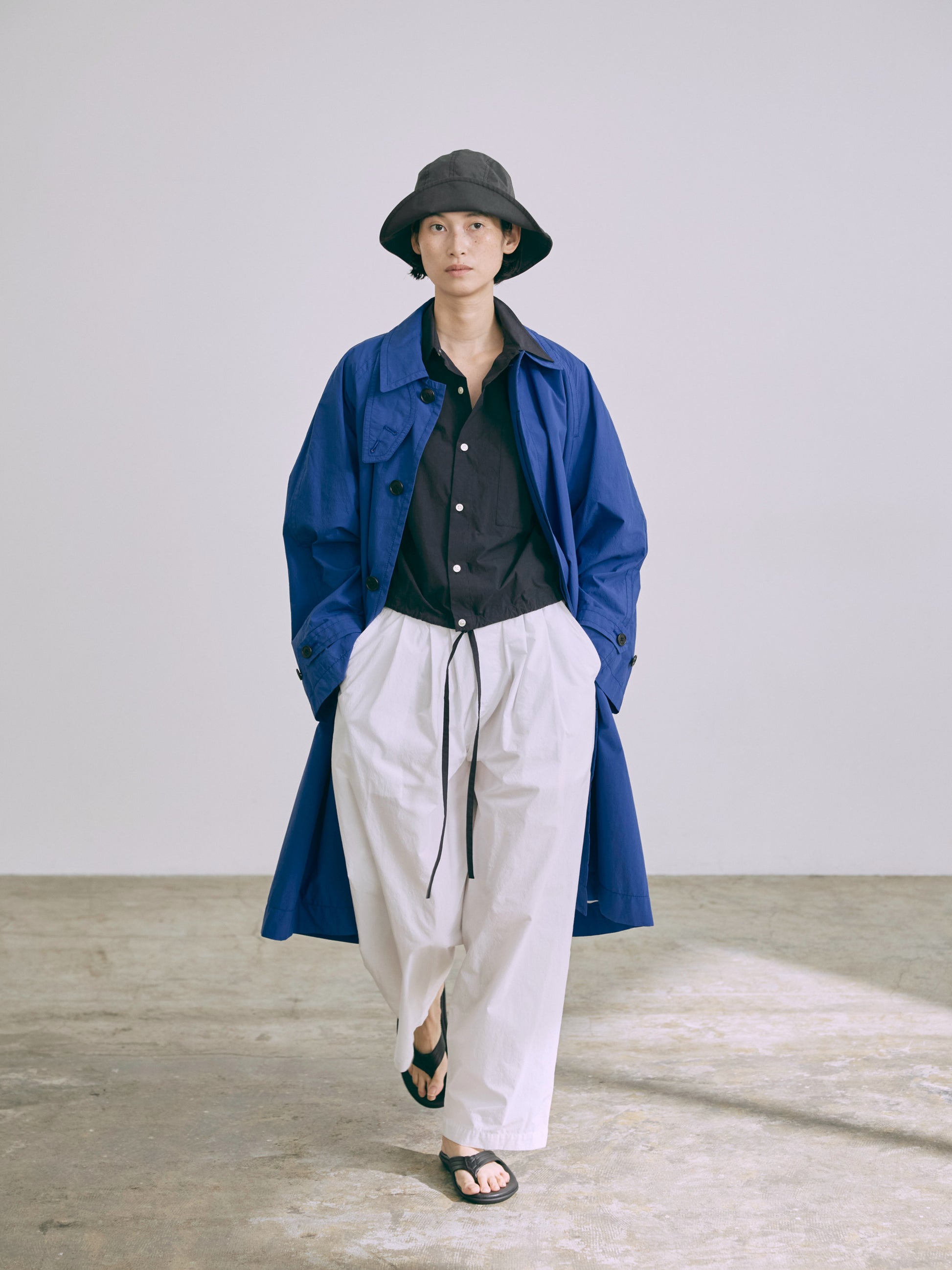 タテ糸にナイロン糸、ヨコ糸に綿糸を高密度に織り込んだオリジナル素材。軽さとさらりとした清涼感が心地良い綿ナイロン素材。2026年春夏シーズンにリニューアルして登場の新素材です。
