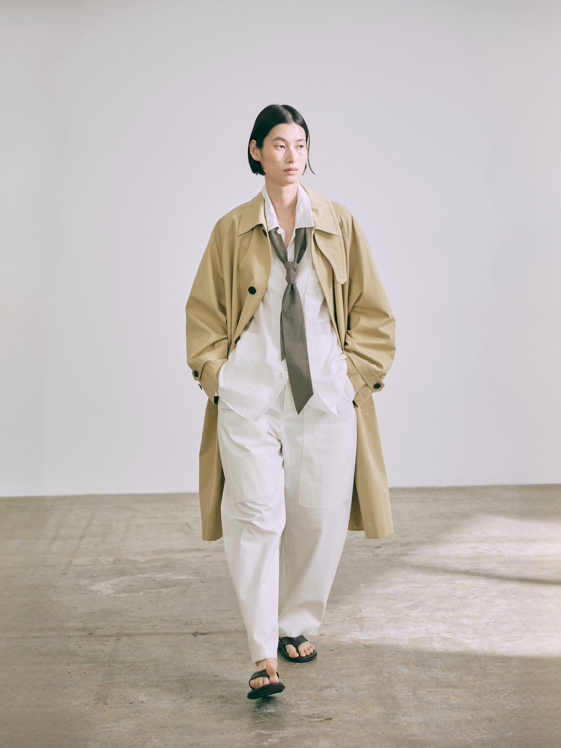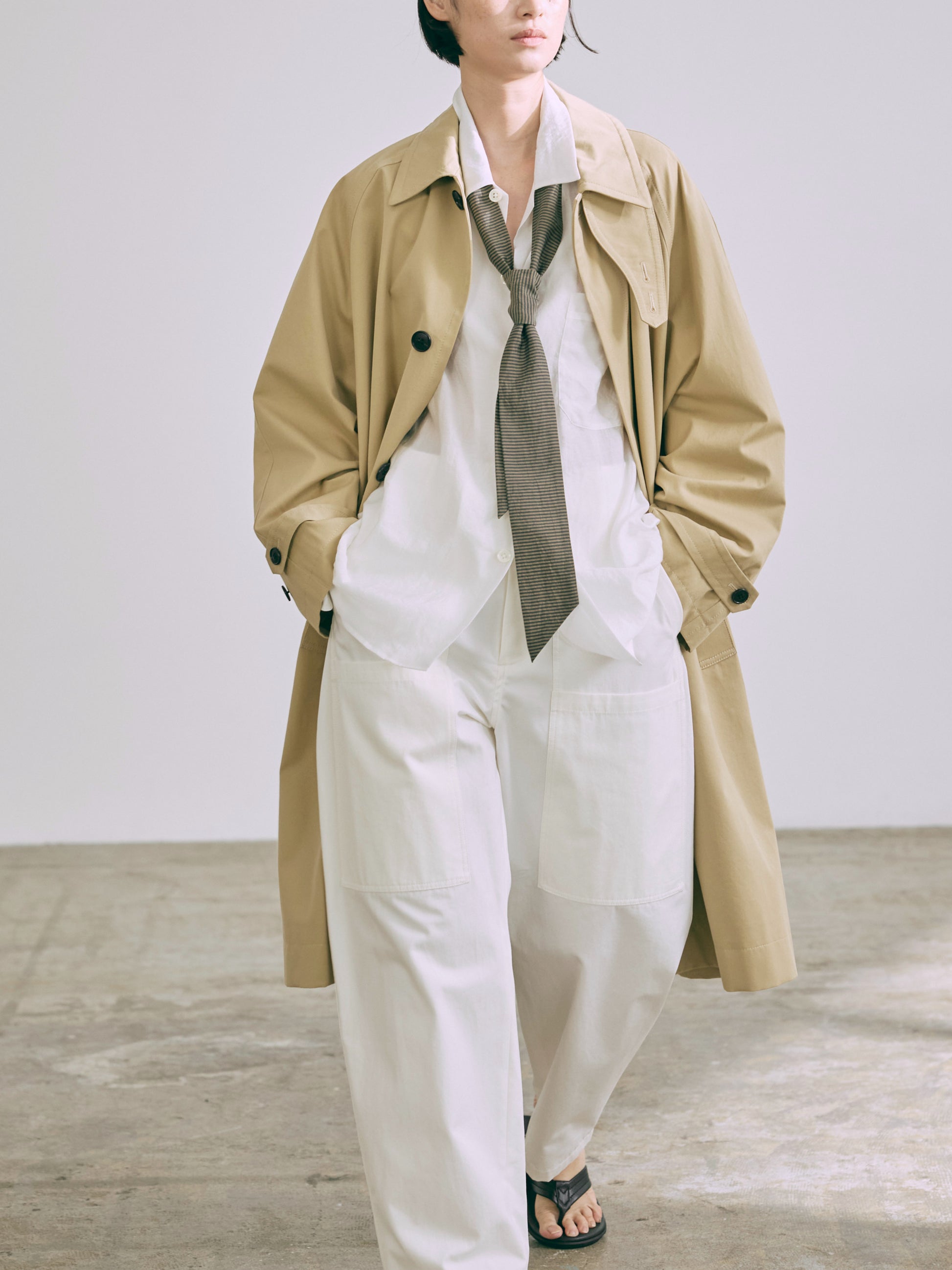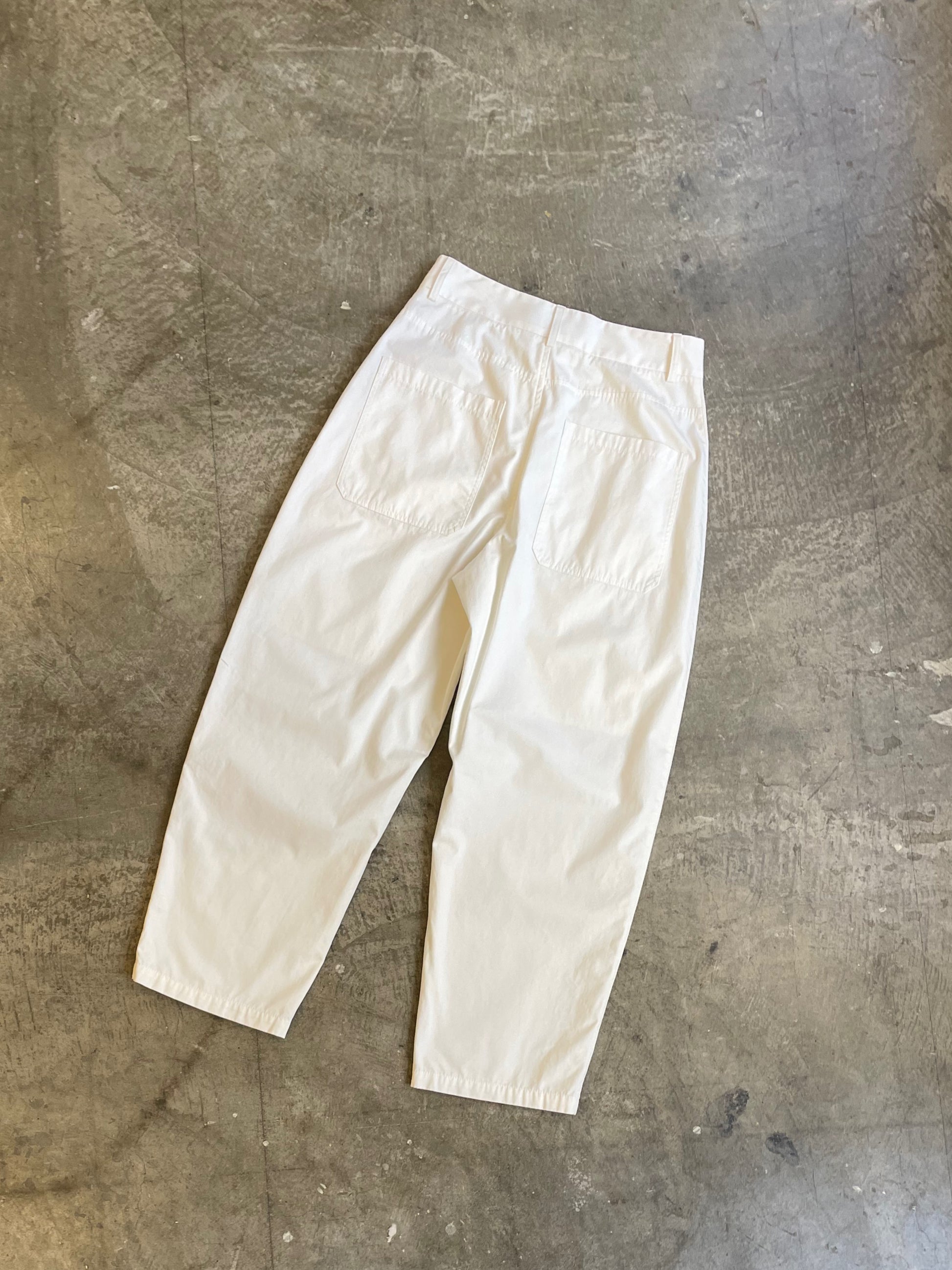 ユーティリティーポケットのついたバーレルシルエットのパンツ。フロントポケットは上下2段仕様のデザインポケット。後ろにもポケットがつきます。美しいワイドレッグのフルレングスが大人のコーディネイトを演出します。アップデートされた後ろ姿が存在感を高め全体のバランスを引き締めています。