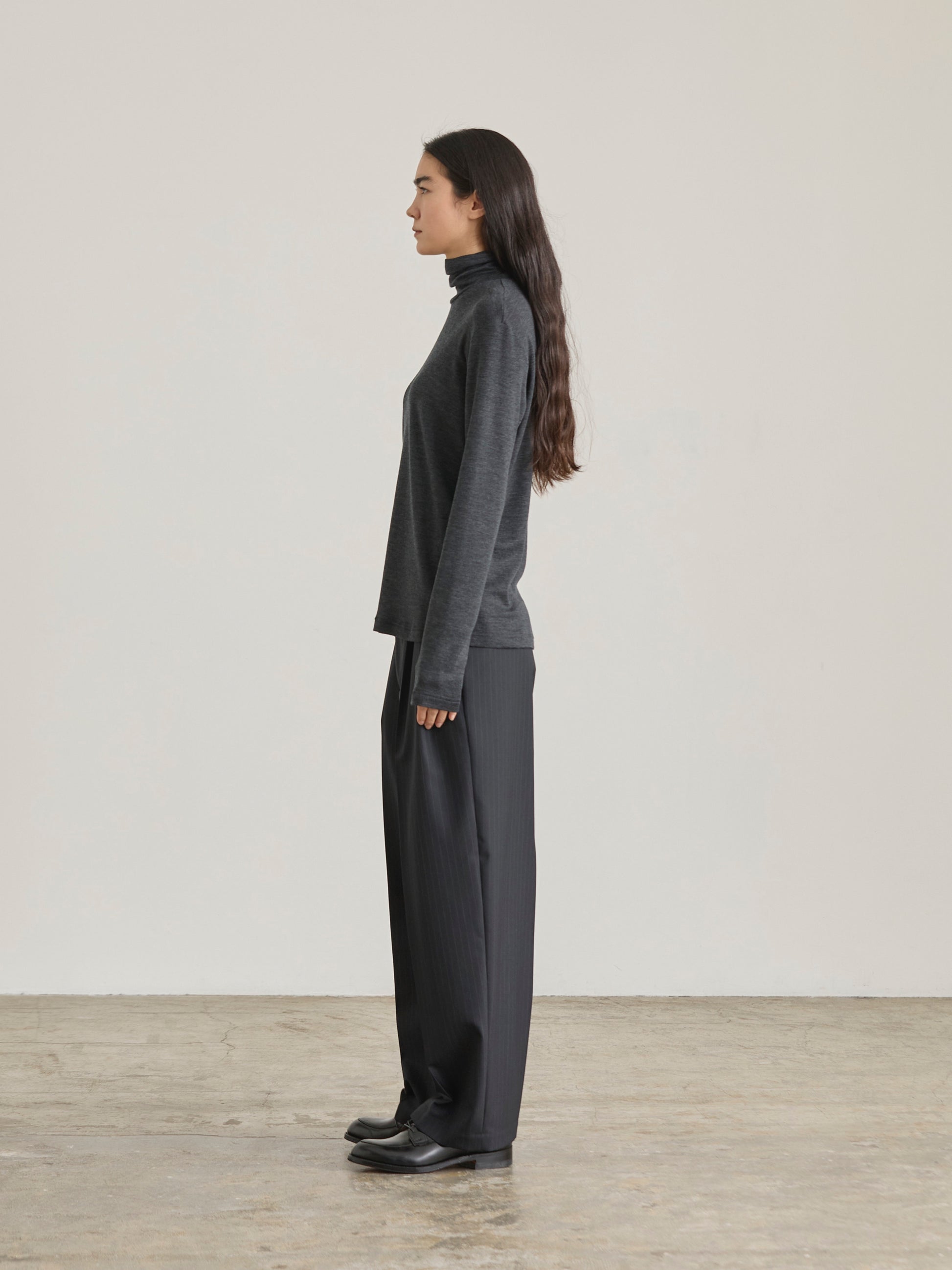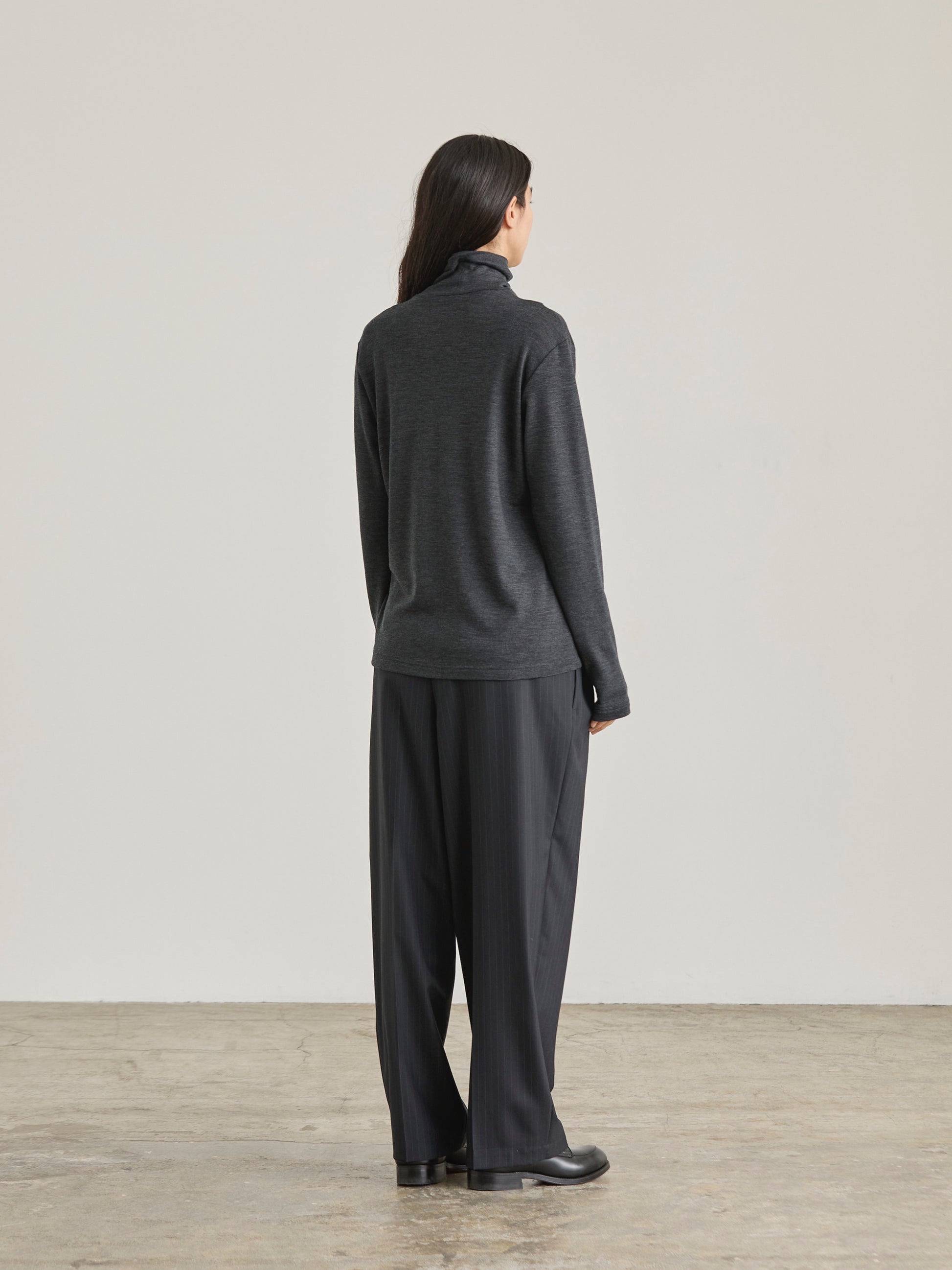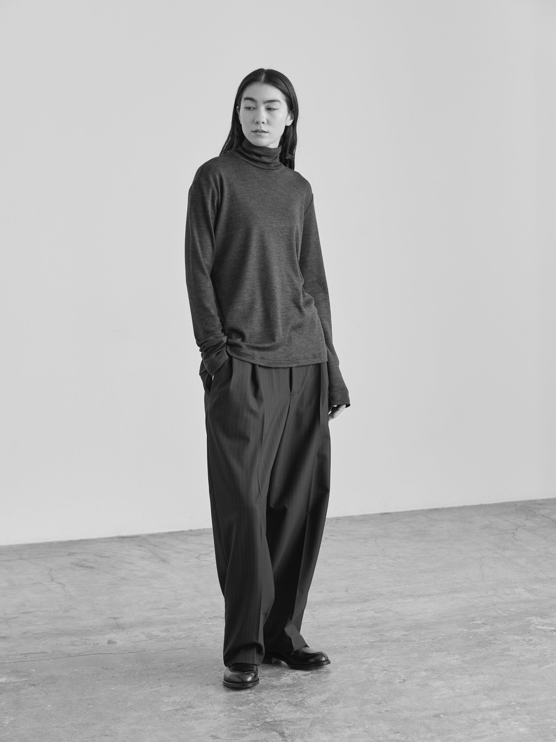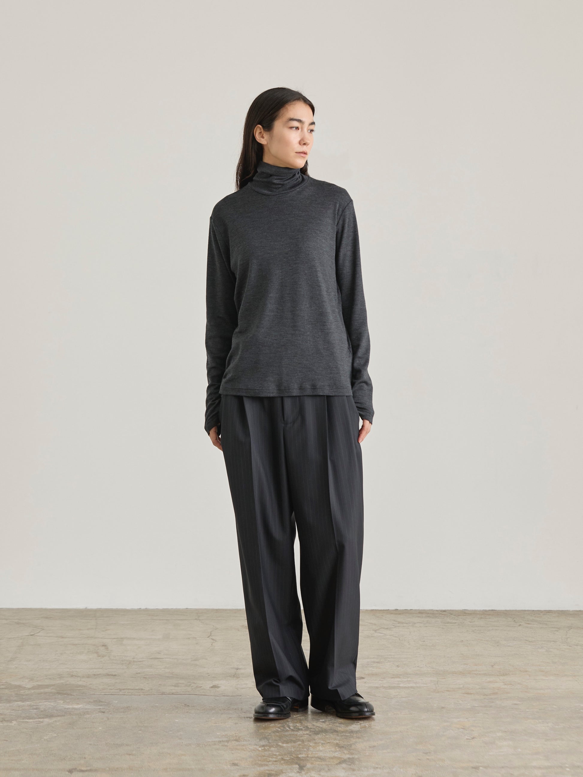 レイヤードスタイルにアクセントを与えるウール100%のウォッシャブルウール素材を使用したハイネックプルオーバー。フライス素材のストレッチ性を生かしたジャストフィットをお楽しみ下さい。