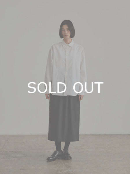 ユニセックスとして作ったビッグシルエットと、すっきりと沿うように設定した首回りのバランスとラウンドカラーがポイントです。ゆとりある着心地がレイヤードにも最適。裾のサイドに付いた釦でカシュクールとしても着こなせる2WAY仕様です。
