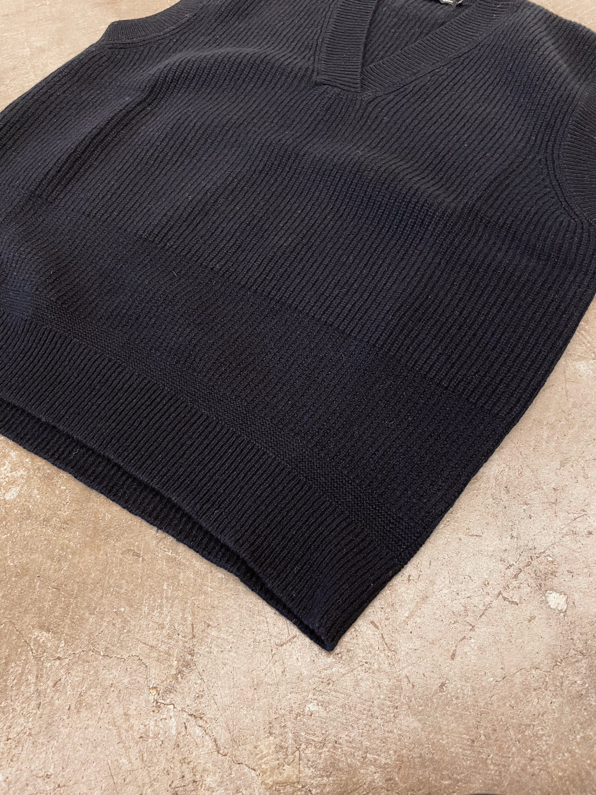 レイヤードスタイルに欠かせないニットベスト。編地の変化でシンプルなデザインにアクセントをつけました。コーディネートの幅が広がるおすすめのアイテムです。