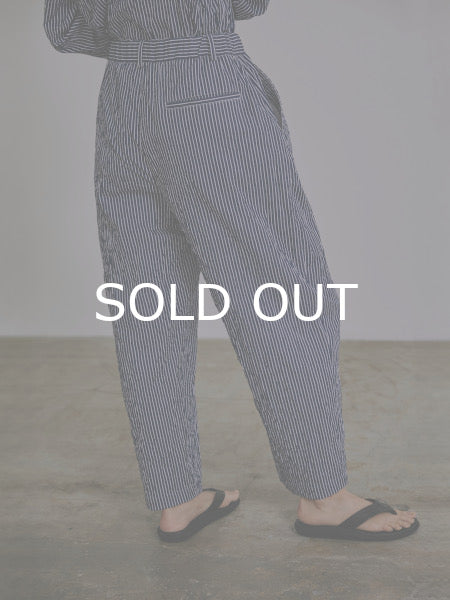 脇シームのバーレルシルエットが特徴のイージーパンツ。ノータックシャーリングのウエストと丸みを帯びたきれいなカーブシルエットのレッグがユニークでリラックスフィットな1本に仕上がりました。
