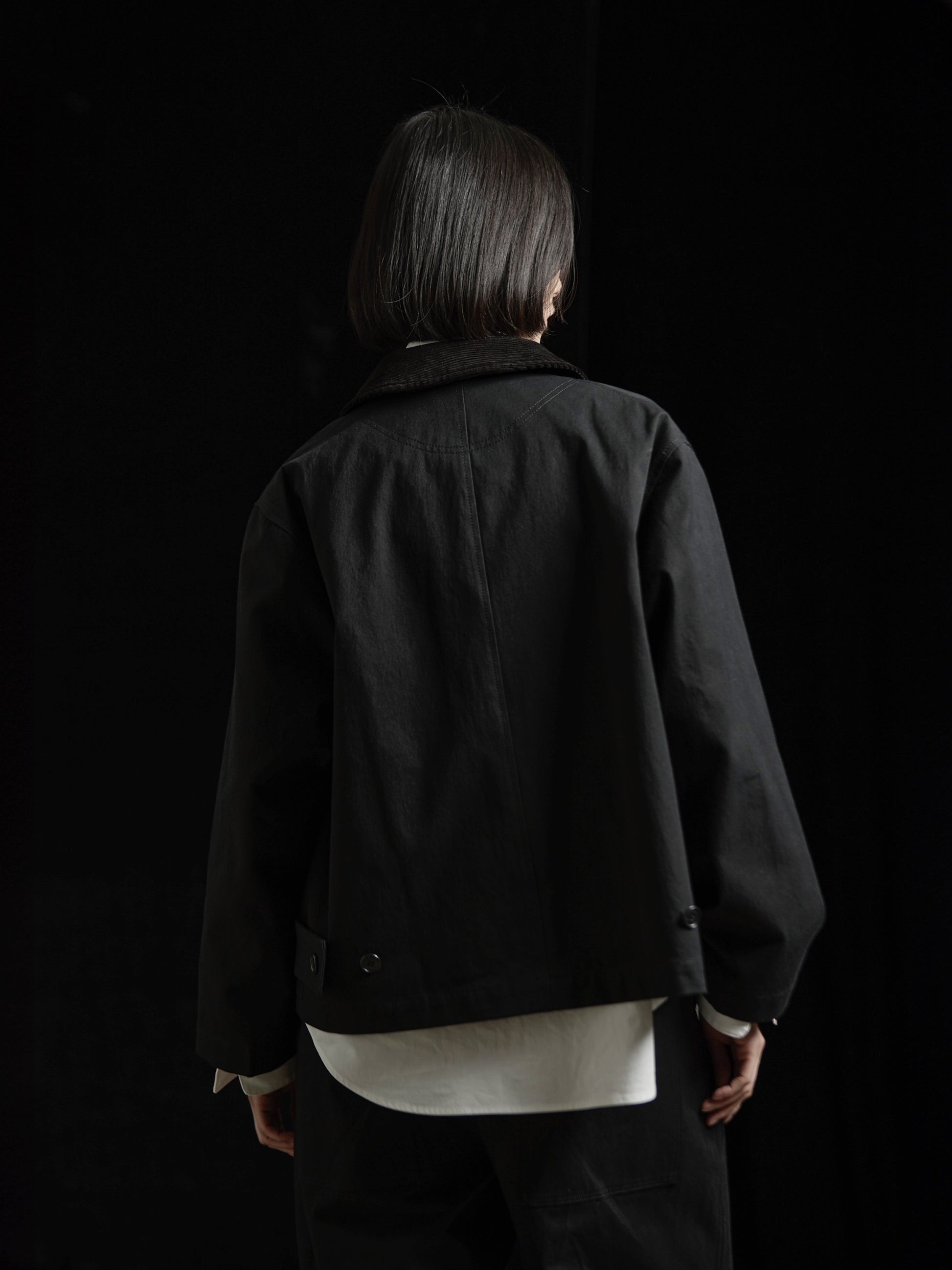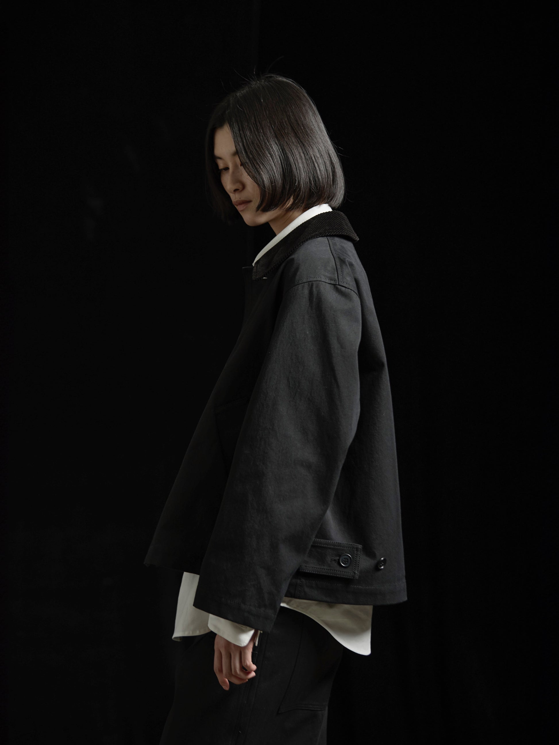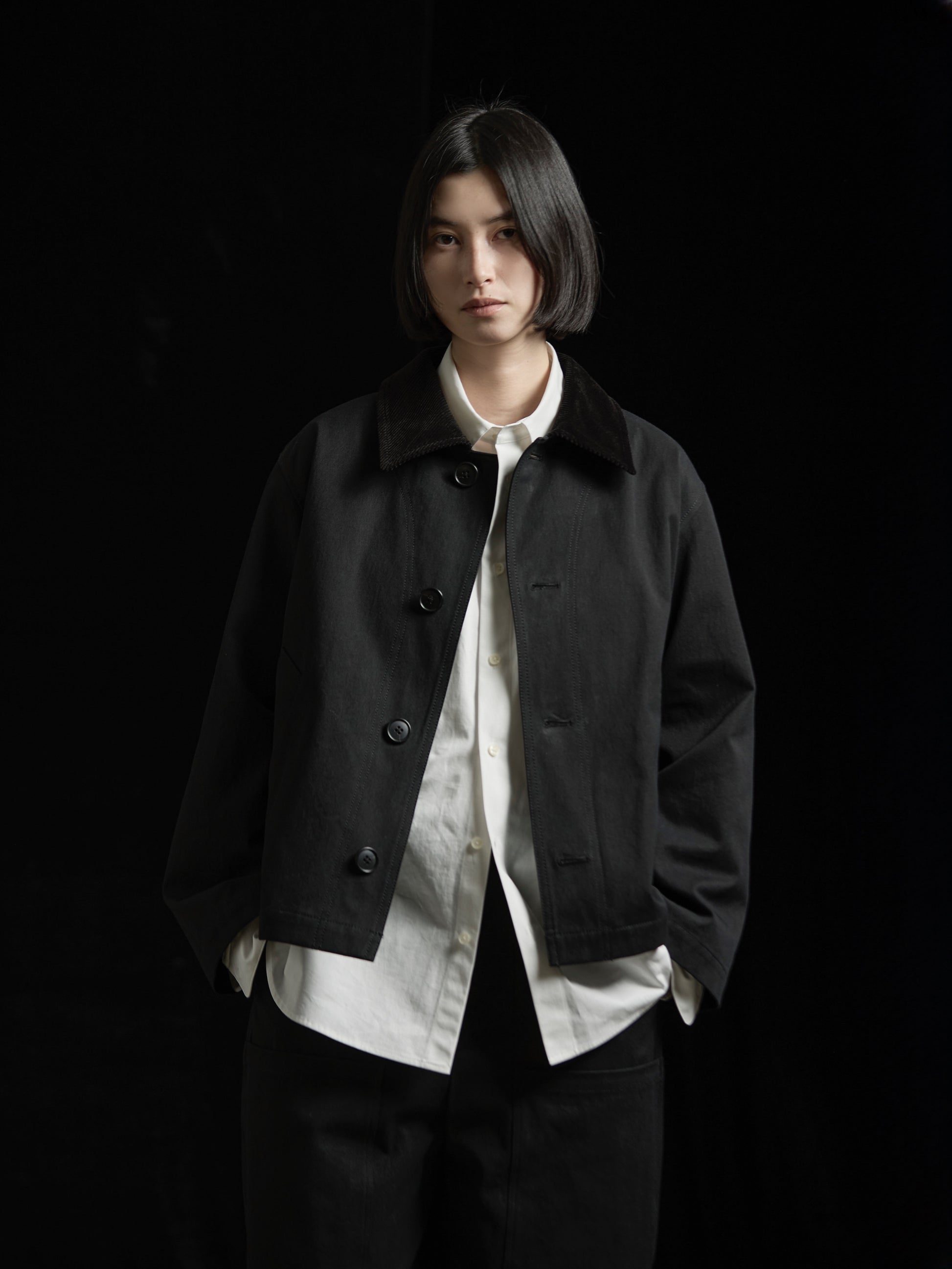 キュプラ100%の裏地が、滑りの良さと上質感を感じる着心地のユーティリティージャケット。デザインはシンプルながらオーバーサイズになり過ぎないサイズ感やコーデュロイ素材で衿切替など細部にこだわったスタンダードな一枚です。