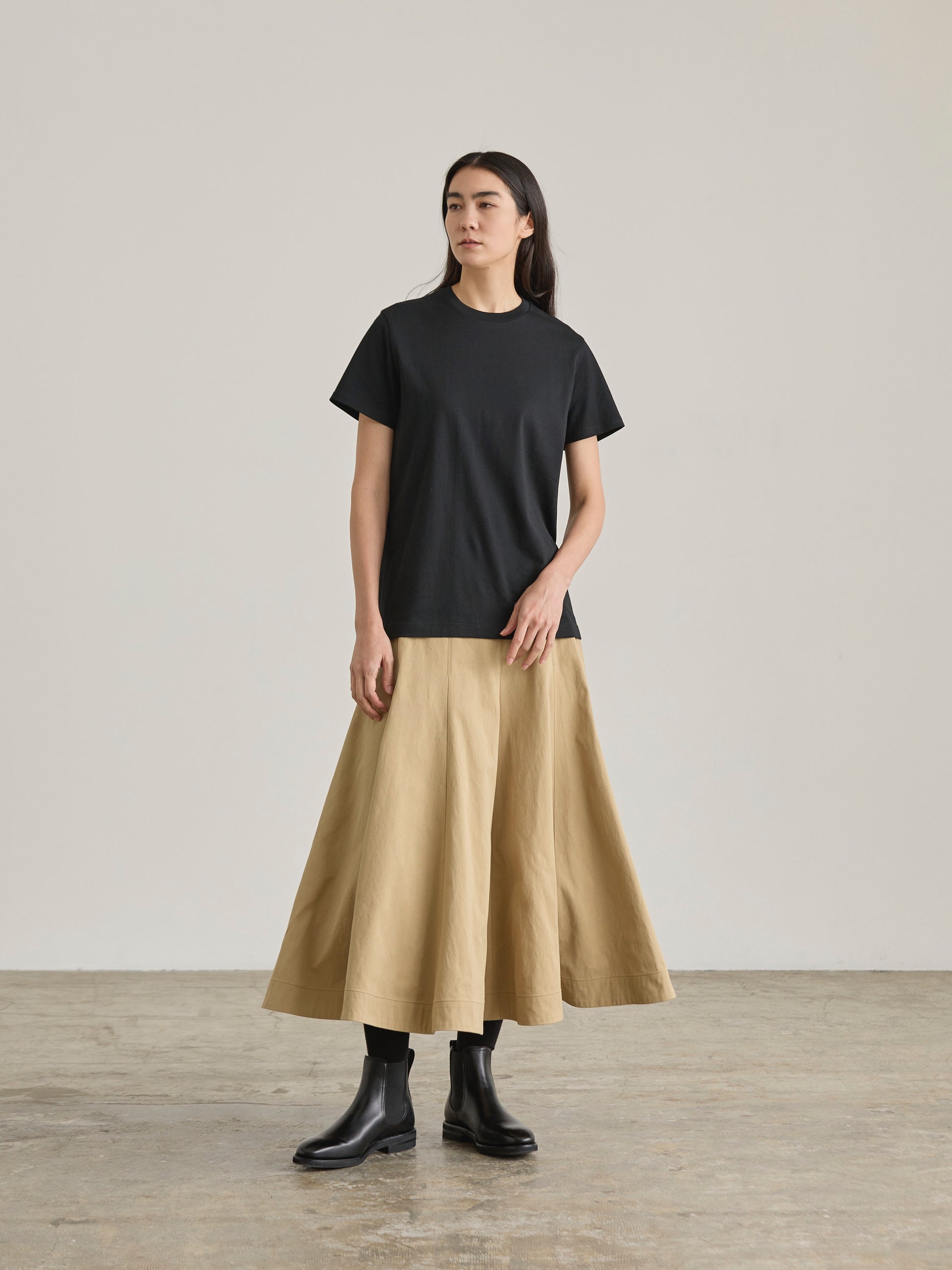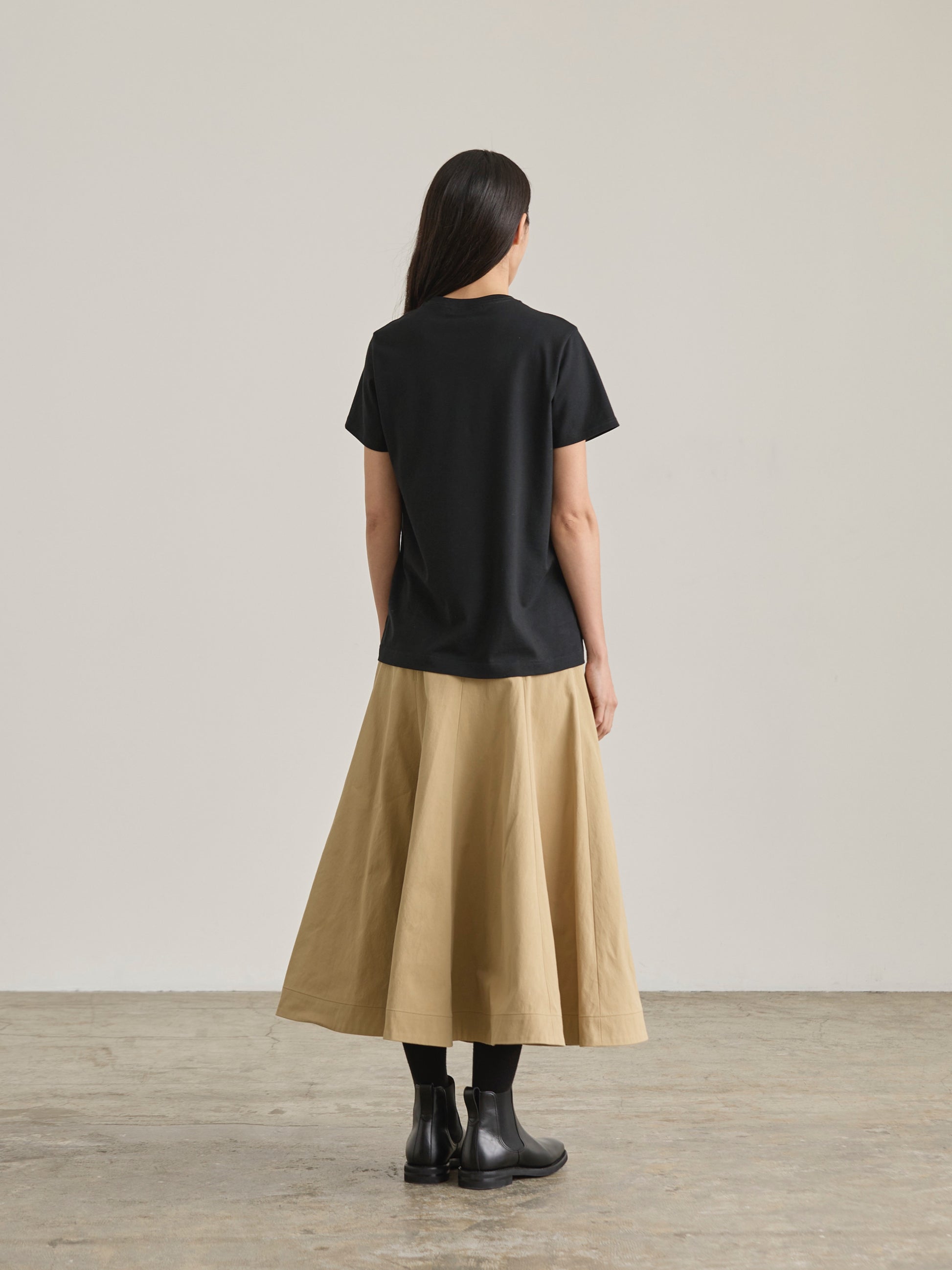 すっきりジャスト&ストレートのボディのシンプルハーフスリーブTシャツ。シンプルながらきっちりとした縫製仕様で大人の女性でも安心して着用できるコーディネートの幅が広がる1枚です。