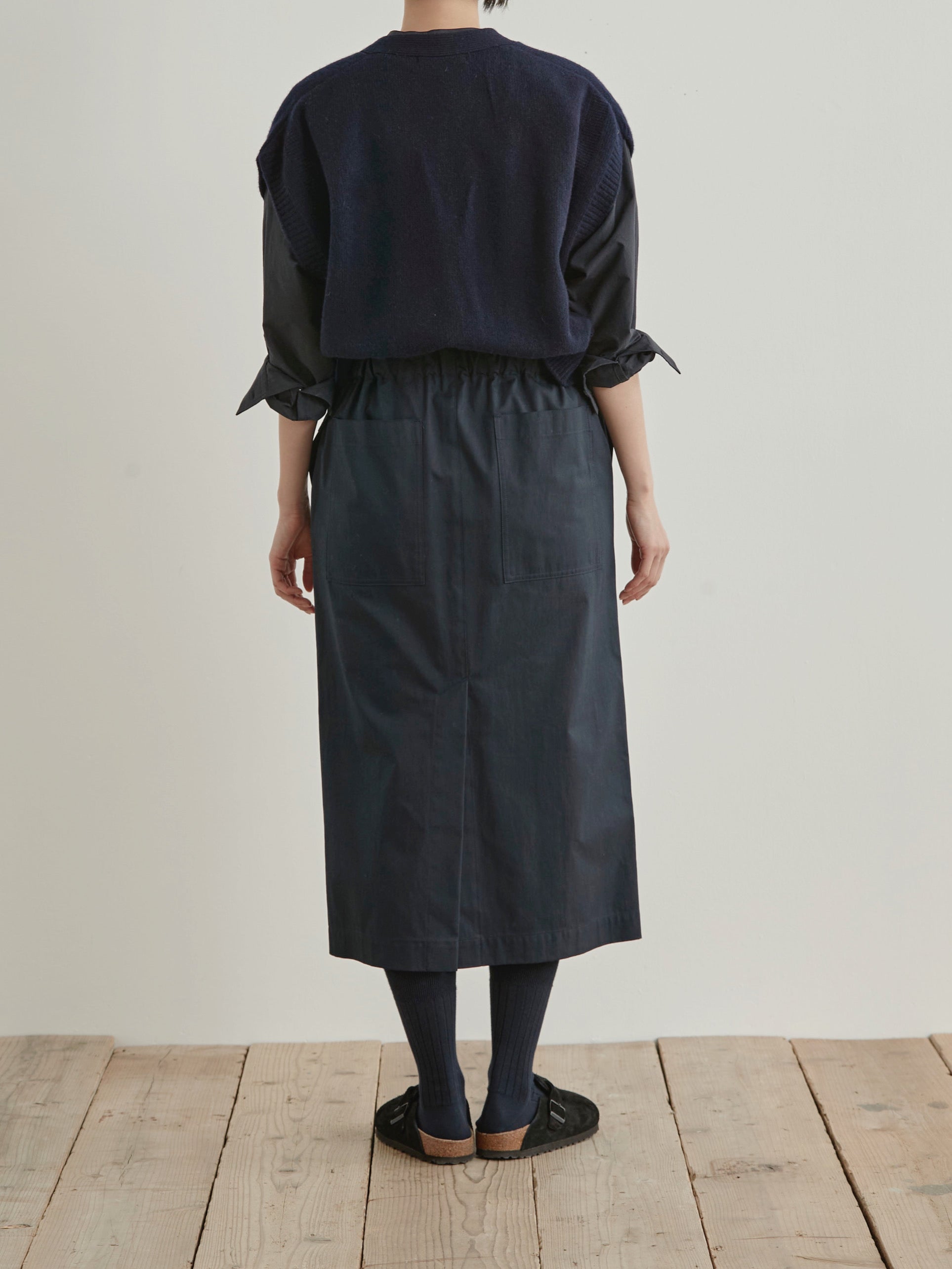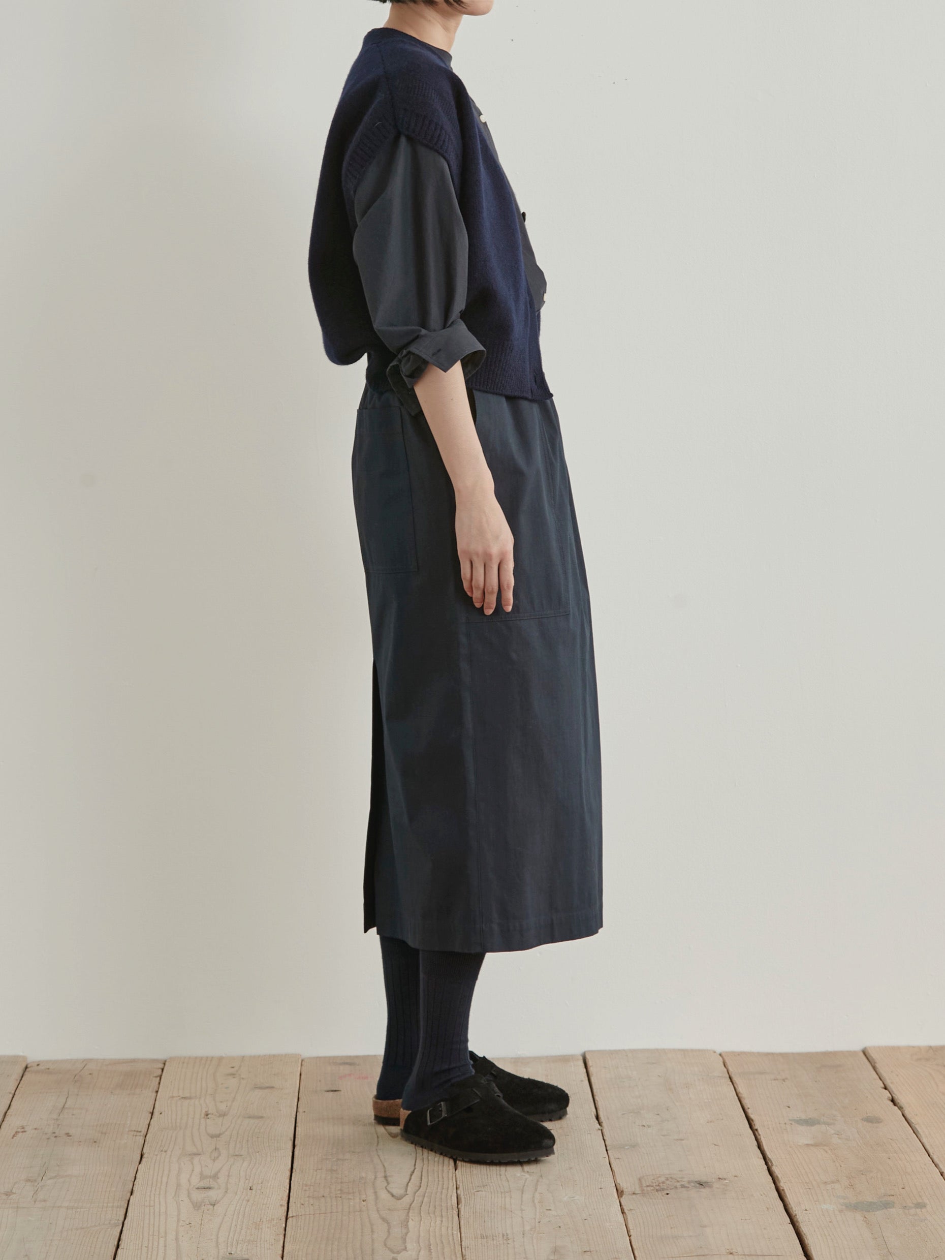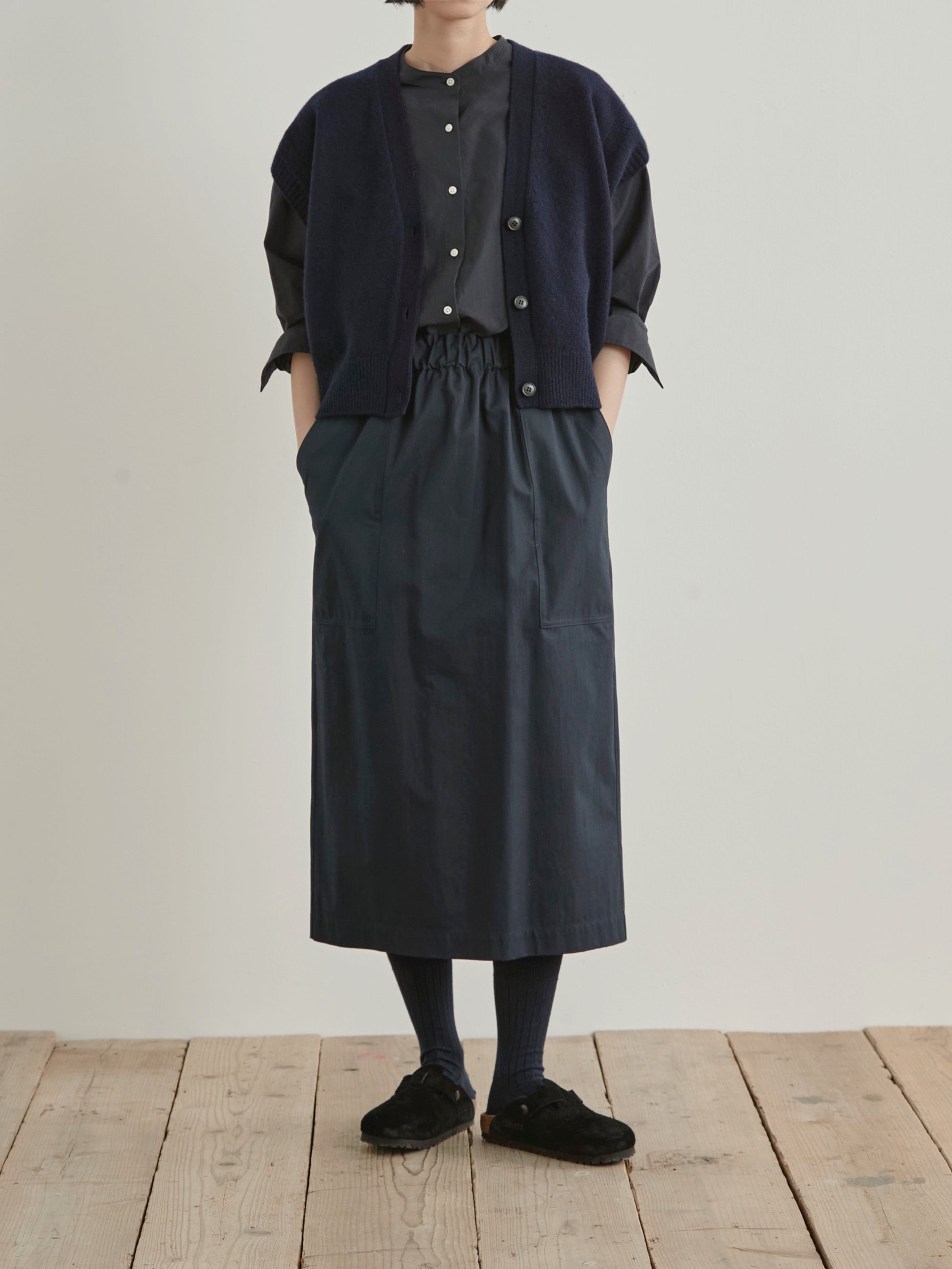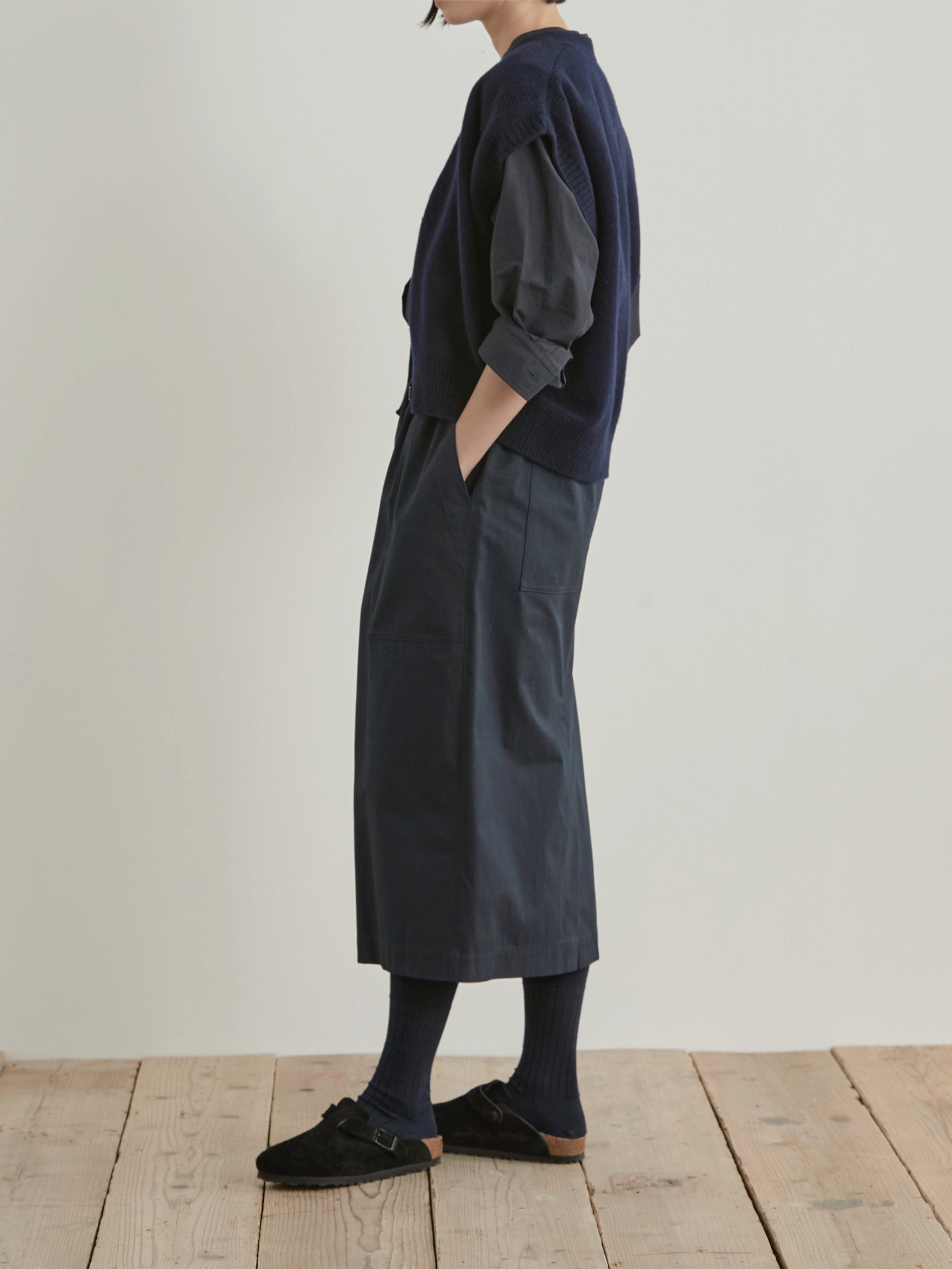 レイヤードスタイルに欠かせないニットベスト。編地の変化でシンプルなデザインにアクセントをつけました。コーディネートの幅が広がるおすすめのアイテムです。